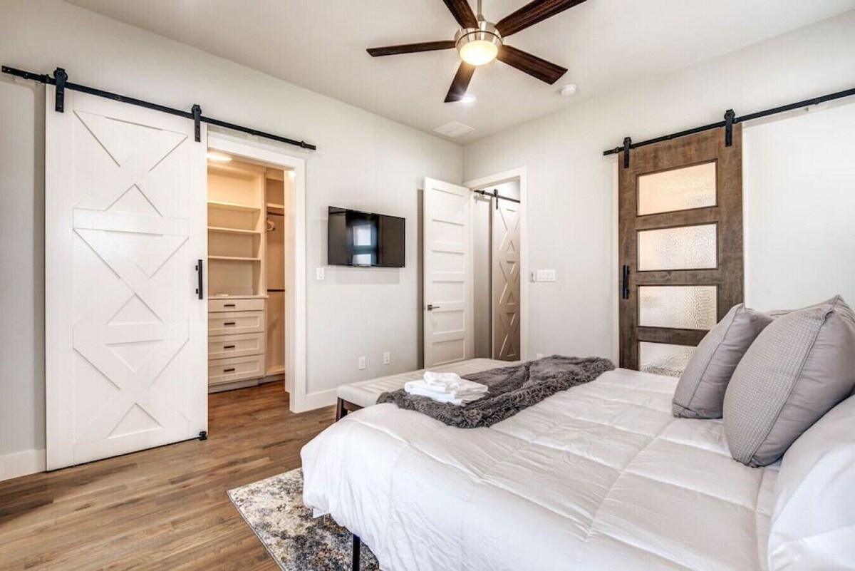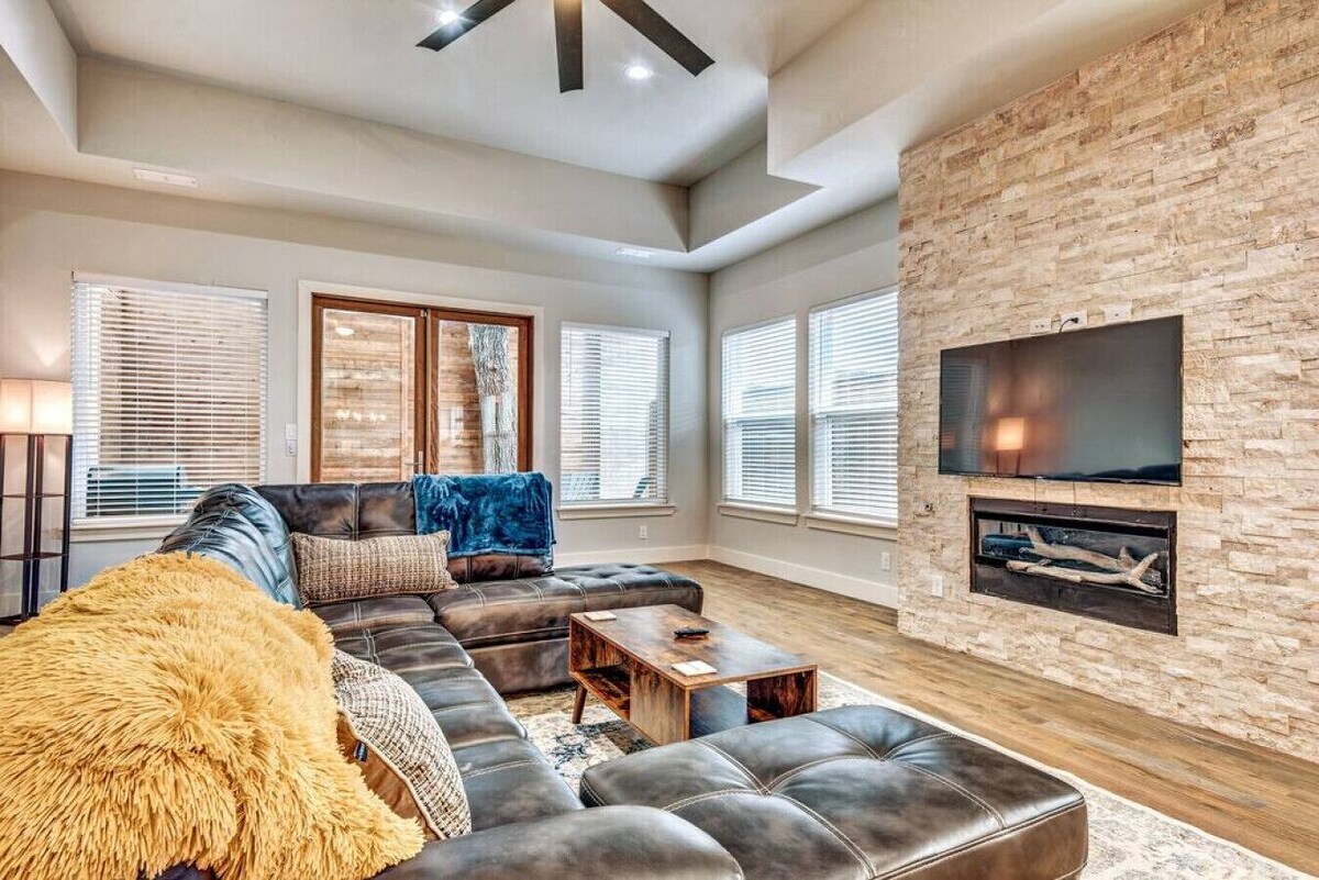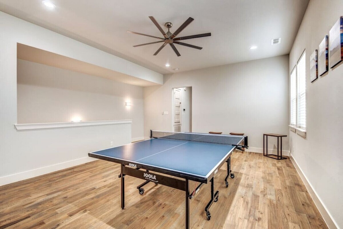 Looking for a modern, spacious living area in a prime location? Stay at this urban dream home for a relaxing break in the heart of Dallas. With four spacious bedrooms, a ping pong table, fast wifi, a private backyard, and a quiet workspace, this functional and beautiful home is the perfect place for both business travelers and vacationing families. 3 Min Drive to Lower Greenville 5 Min Drive to Dallas Museum of Art 8 Min Drive to Downtown Dallas Experience Dallas With Us & Learn More Below! The space KEY FEATURES: ☀ 3,148-square-foot luxury home ☀ 4 designer bedrooms; 2 kings + 4 twins ☀ Additional Twin Size Day Bed and Full Futon ☀ 3.5 bathrooms; 1 w/ tub + walk-in shower, 1 large shower, 1 full bath w/ tub/shower combo ☀ Open concept living space w/ a large kitchen, dining table + modern lounge ☀ Game room w/ full-sized ping-pong table ☀ 4 Roku-enabled flat-screen smart TVs ☀ High-speed Wi-Fi ☀ Dedicated workspace w/ a desk, chair + lamp ☀ Kid-friendly amenities: travel crib, standalone highchair (on request) + kids’ tableware ☀ Home laundry room w/ washer + dryer ☀ Large, private backyard w/ lounge-style seating + BBQ grill ☀ Security cameras covering the front entrance + back perimeter ☀ Free parking on driveway + additional street parking nearby ☀ Central location near Downtown Dallas ☀ Identical home available next door for larger groups Here Are A Few Kind Words From Our Past Guests: “Our stay was great! Very clean and great location. Easy to find! Would definitely recommend.” –Lindsey “My family and I enjoyed our stay. Loved the shower in the primary suite and ping pong table. Lee was very responsive and helpful with our late check out accommodations.” –Ghaicyll “Awesome home! House exactly as pictured with great gathering spaces and kitchen space! Bedrooms/bathrooms are comfortable and spacious. House was clean and amenities for kids were great, pack and play a nice touch. Ping pong table and games were enjoyed by all. Owner was quick to respond and very nice to work with! Thanks Lee!” –Susan ☆☆ BEDROOMS & BATHROOMS ☆☆ This modern home provides you with four large bedrooms and ample space for you to unpack your personal belongings and make yourself at home! Thoughtful furnishings and tasteful decor create a calm and welcoming vibe, making the bedrooms the perfect place to let down your hair and relax. The stylish primary bedroom features lovely wooden floors, a luxurious king-sized bed, and a full sized futon. A wall-mounted smart TV provides entertainment and is the ideal way to wind down after a busy day exploring local attractions. Slide open the two unique barn doors to reveal a large walk-in closet that offers plenty of space to unpack your things. Step through the glass doors onto a private balcony to enjoy some fresh air. This room has an ensuite full bathroom with a dual vanity, a sleek walk-in shower, and a separate soaking tub. The second bedroom features a king-sized bed, and a wall-mounted Roku TV so guests here can also enjoy their favorite programs from the comfort and privacy of their own room. The attached full bathroom offers a walk-in shower and toilet that are separated by a door from the sink, making it easy for multiple people to use the space at the same time. The remaining two bedrooms each contain two single beds, so you’ll have plenty of flexibility in the sleeping arrangements. These two bedrooms share access to a large bathroom that offers a shower and tub combination. If you need some extra sleeping space, you’ll find a twin sized day bed in the upstairs game room. A half bath is also available to cater to the common areas. Each bathroom is stocked with fresh towels and essential toiletries such as shampoo, conditioner, and shower gel. ☆☆ KITCHEN & LOUNGE ☆☆ The spacious open-floor living area is ideal for entertaining and relaxing. Cozy blankets, plush accent pillows, and decorative light fixtures make this an inviting space for large groups to have a great time together. Snuggle up under some blankets on the plump, leatherbound sectional and bask in the glow of the indoor fireplace. Hit play on your favorite movie and enjoy front-row seats. For some entertainment, head upstairs to the exciting game room. This huge space features a full-size ping pong table, so grab some paddles and challenge your companions to the ultimate vacation ping pong match! Pull up the bar stools and grab a beer to watch the big game on the large TV screen. Spacious counters, custom cabinets, and high-end fittings cry out for you to whip up gourmet meals in the beautiful open kitchen. Every gadget and utensil you can imagine (including kid-friendly tableware), modern stainless steel appliances, and a fully-stocked coffee bar make it an absolute dream to cook during your stay. The giant countertop island is the perfect spot for food prep as well as providing extra dining space for your group. The formal dining area is lit by industrial-style lights hanging above the contemporary table for 8. Work without distractions from the quiet workspace, adjacent to the front door. It’s separate from the main living space, yet close enough to the action that you won’t get FOMO. This desk area makes it easy for anyone who needs to work remotely during their stay to keep up with their tasks! ☆☆ OUTSIDE SPACE ☆☆ The French doors in the living room open onto a covered patio where you’ll find comfortable outdoor seating. It’s the perfect place to sip on a steaming hot cup of coffee or enjoy an evening cocktail. The private backyard has been covered in crushed stone and there’s plenty of room for the kiddos to run around. Throw your favorite BBQ foods onto the grill to char for a quick and easy alfresco dining experience. Less than a ten-minute drive from Downtown Dallas and McKinney Street, this beautiful home is in a prime location for the best restaurants and most beloved bars that Dallas has to offer.