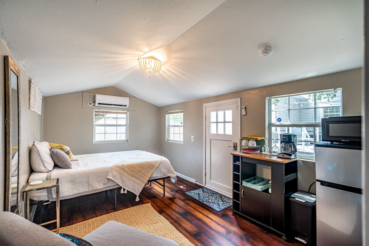 3 blocks away from YUM the location is everything. You have the tiny house to yourself that features a queen bed, full bathroom, a minisplit AC, TV, and basic fridge and kitchen supplies. Pet friendly, but please let us know if you have a pet. Our prices include all fees. No hidden fees.