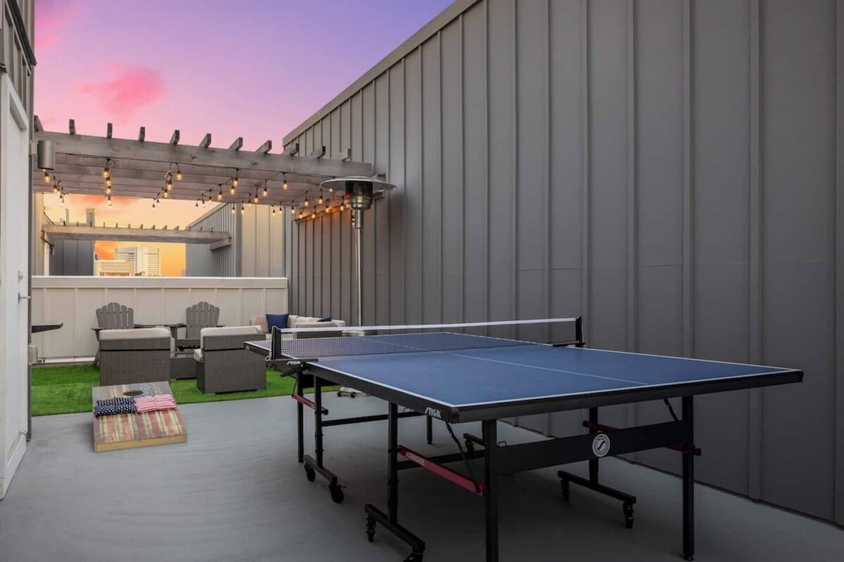 Welcome to our newly built, modern & unique home where you can have fun with a plethora of games and create life-long memories with your friends and family! Our house max is 10 guests and anyone coming to the home counts towards that total regardless of who is staying the night. Ultimate game house means ultimate fun. In our new 2,133 sqft townhome you will find these fun amenities that will make your stay even more memorable! • Shuffleboard table • Bar cart with complimentary wine, glasses, and bar utensils. • Board games + cards + dominoes • ROKU Smart TV with access to streaming services And it gets better! Go up to the 4th floor and enjoy our 100% PRIVATE rooftop terrace with: • Ping Pong / Beer Pong Table • Cornhole • BBQ Grill • Ample and unique seating • Mini fridge and storage shelves to keep your refreshments close by Dogs and cats are always welcome! Brand new appliances and furniture, washer and dryer included plus a full kitchen with: refrigerator, dishwasher, oven, stove, microwave, Keurig, cooking ware, plates, cups & utensils. Layout and sleeping arrangements: This is a 4-story home -First floor: 1 full-size bed, private bathroom, and closet with hangers and shelves. Garage. -Second floor: kitchen, games, living room, 1 half bath. There are 2 couches in the living room. -Third floor: 1 primary bedroom with a queen size bed and 1 full size bed. It features a spacious bathroom with walk-in shower and separate bathtub. Additional secluded nook with full size bunk beds (sleeps 4). - Fourth floor: rooftop terrace (100% private). Guest access: You'll have 100% privacy inside this home and the check-in process is fully automated. Parking: 2 cars fit in our garage and free street parking is also available. We don't allow more than 10 guests, even if they're not staying the night. No exceptions. We cannot offer early check-ins or late check-outs at this home due to the time it takes us to clean it after each guest. Other things to note: Booking includes resort quality cleaning, freshly laundered sheets and towels for all guests, and all consumables including toilet paper, soap, shampoo, coffee, tea, and a whole lot more. This property is monitored on the front door and inside the garage by a Ring video/audio doorbell camera. Keep in mind that this is NOT a party house. Bluetooth speakers are not allowed. Guests must always observe quietness after 10:00pm in outdoor areas regardless of the day of week. Please be respectful with our neighbors. Pick-up trucks don't fit in our garage. Please make sure to read our full house rules before booking. About the neighborhoood: The fun continues down the street! • The home is located across the street from Dahlia Bar & Bistro, Fiction Coffee, Texas Tapyard, a liquor store, meat market, and walking distance to Starbucks. • 5 min drive to Lower Greenville and Deep Ellum featuring many of Dallas’ best bars and restaurants. (make sure to check out our Best Things to Do in Dallas list) • About 1 mile away from Walmart and Tom Thumb, and 0.5 miles from CVS. THINGS TO DO IN DALLAS: Coffee shops across the street: Dahlia Bar & Bistro, Fiction Coffee, a liquor store, meat market, and walking distance to Starbucks. Lower Greenville: pedestrian-friendly area that has always been a hotspot for nightlife. It also features plenty of new restaurants and bars, such as La La Land Kind Cafe, Desert Racer, Eastside Social, Wah Wah Room, and Flatbread Company, as well as: • HG Suply Co: when a trendy bar with rooftop people watching and craft beers meets delicious, farm-to-table food, you end up with the hit bar HG Sply Co. • Swizzle: tiki bar and restaurant that teleports diners to a Hawaiian wonderland. • Gloria’s: it brings the Latin flavor to Lower Greenville with its incredible Mexican food and, more importantly, their margaritas. • Beauty bar: Beauty Bar combines a hipster and girly yet grungy and groovy vibe to create one big party right before the beginning of lower Greenville. • The Old Crow • A warm atmosphere with pool tables, jukebox, darts, karaoke, and more • Wabi House: the go-to spot on Lower Greenville for ramen. • Alamo Club: dig into expertly prepared steaks, smoky pastrama sandwiches, and roasted chicken, all while sipping the Dak #4, an excellent rum cocktail named for Dallas Cowboys quarterback Dak Prescott. • The Dubliner: Irish pub, the ideal spot to gather with friends around great drinks with a warm and cozy atmosphere. Museums and other attractions: • Sixth Floor Museum at Dealey Plaza: covers the life and legacy of President John F. Kennedy and is one of the state’s most visited historic sites. • Dallas Museum of Art • Dallas Farmers Market • Reunion Tower • Klyden Warren Park • George W. Bush Presidential Library Deep Ellum: Famous for its nightlife, especially when it comes to live music venues– where countless music legends have graced the stages of places like The Prophet Bar, Trees and The Bomb Factory. For dancing there's the Lizard Lounge, and for artisanal cocktails in chill surrounds, check out the Black Swan Saloon. And no night out in Deep Ellum is complete without a visit to the best dive bar in the country, Double Wide, and Dallas Comedy Club. An ever-growing lineup of chef-driven restaurants, gastro pubs, coffee shops and casual mom-and-pop eateries has turned Deep Ellum into the city's newest foodie haven. Here, visitors can chow down on everything from mouthwatering barbecue at Pecan Lodge, artisanal pizzas at Il Cane Rosso and northern Chinese street food at Monkey King Noodle Co. to gourmet burgers at Twisted Root, pub grub at Angry Dog, haute cuisine at Twenty-Seven and don’t forget to check out Deep Ellum Brewing Co. Bishop Arts District: packed with more than 60 unconventional boutiques, restaurants, bars, coffee shops, and art galleries, all within an easily walkable hub. Restaurants and bars: • Tribal Restaurant • Atlas • Botanist • Revelers 