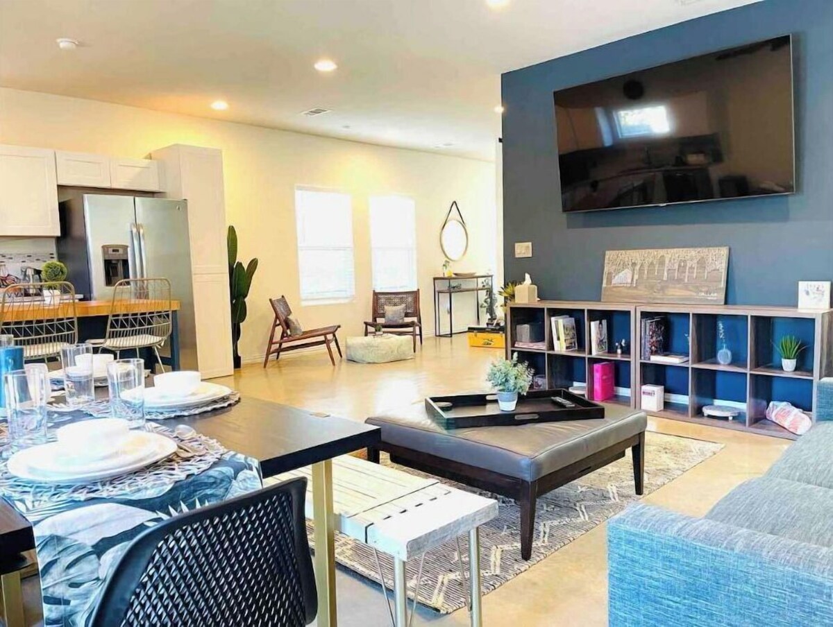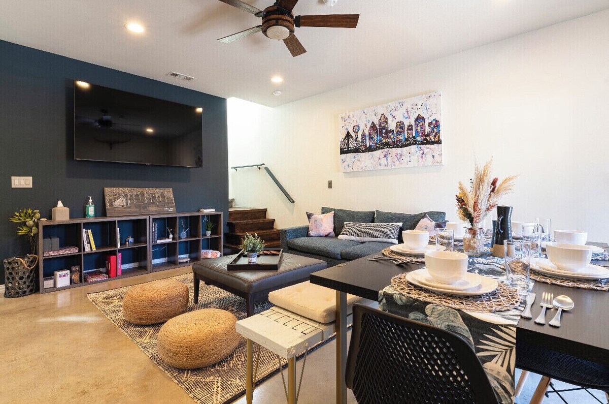 This West Dallas retreat is a great place for families, a small group of friends, or business professionals looking for a welcoming space to stay and quick access to city landmarks. It's 5 mins away from the Medical District (UT Southwestern, Parkland), Bishop Arts District, Deep Ellum, American Airlines Center, and Downtown Dallas, and less than 20 miles from the heart of Arlington (Cowboys Stadium, Rangers Ballpark, Hurricane Harbor and Six Flags). The space This two-level private home has an open concept kitchen, dining, and living room space. You can prepare meals in a fully equipped kitchen with an electric range, fridge, and island prep space while chatting with friends or family. The extendable dining table is great for intimate gatherings where you can have a partial view of the backyard and/or the 75\ ,