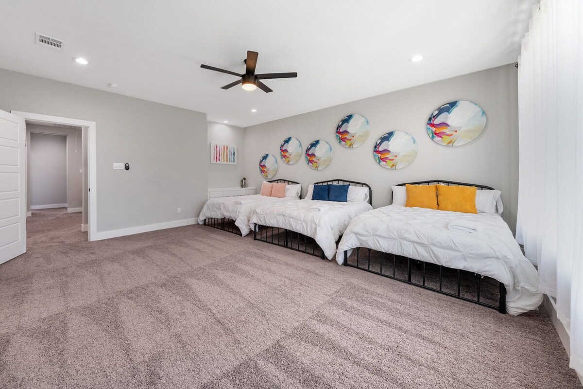 Come enjoy your stay in this brand new 2021 custom built home that’s within minutes of all the best things in Dallas. Featuring 5 bedrooms and a spacious backyard, this retreat is perfect for your family, friends, or business gatherings! You will also find multiple 75” TV’s and a full size arcade basketball game upstairs for the kids (or the inner-kid in you) to always make sure you’re entertained during your stay. Three House rules- 1. No Disruptive parties - Events with loud music, parking violations, excessive drinking, take place primarily at night, and 25+ people are not allowed. 2. Smoking is not permitted inside ($400 fine), no tampering with cameras/security devices, no DJs or large sound systems (Only regular speakers). 3. First 16 guests are included by the base rate which includes everyone visiting and spending the night. Keep all guests and noise inside after 10:00 PM Our prices include all fees. No hidden fees.