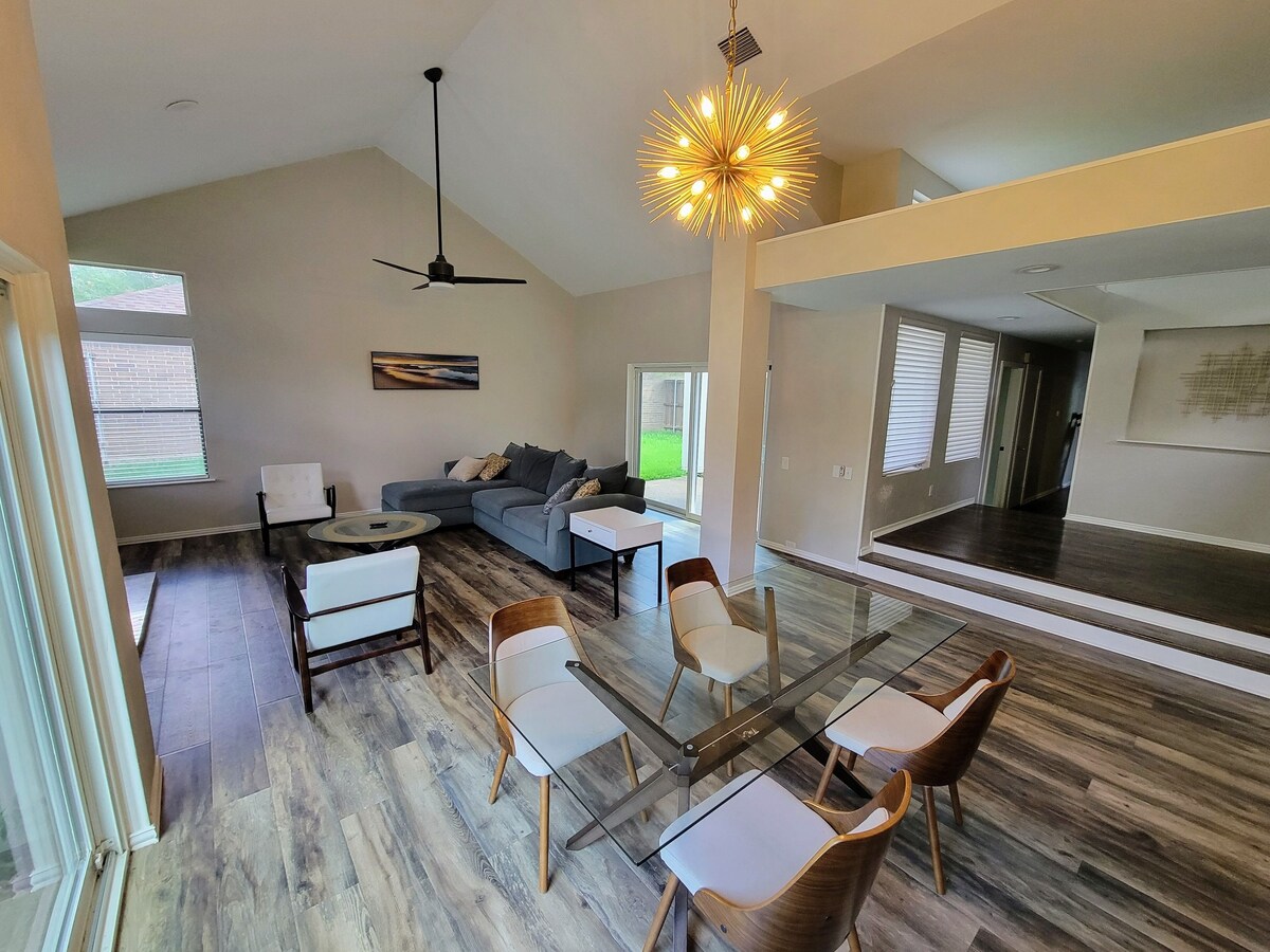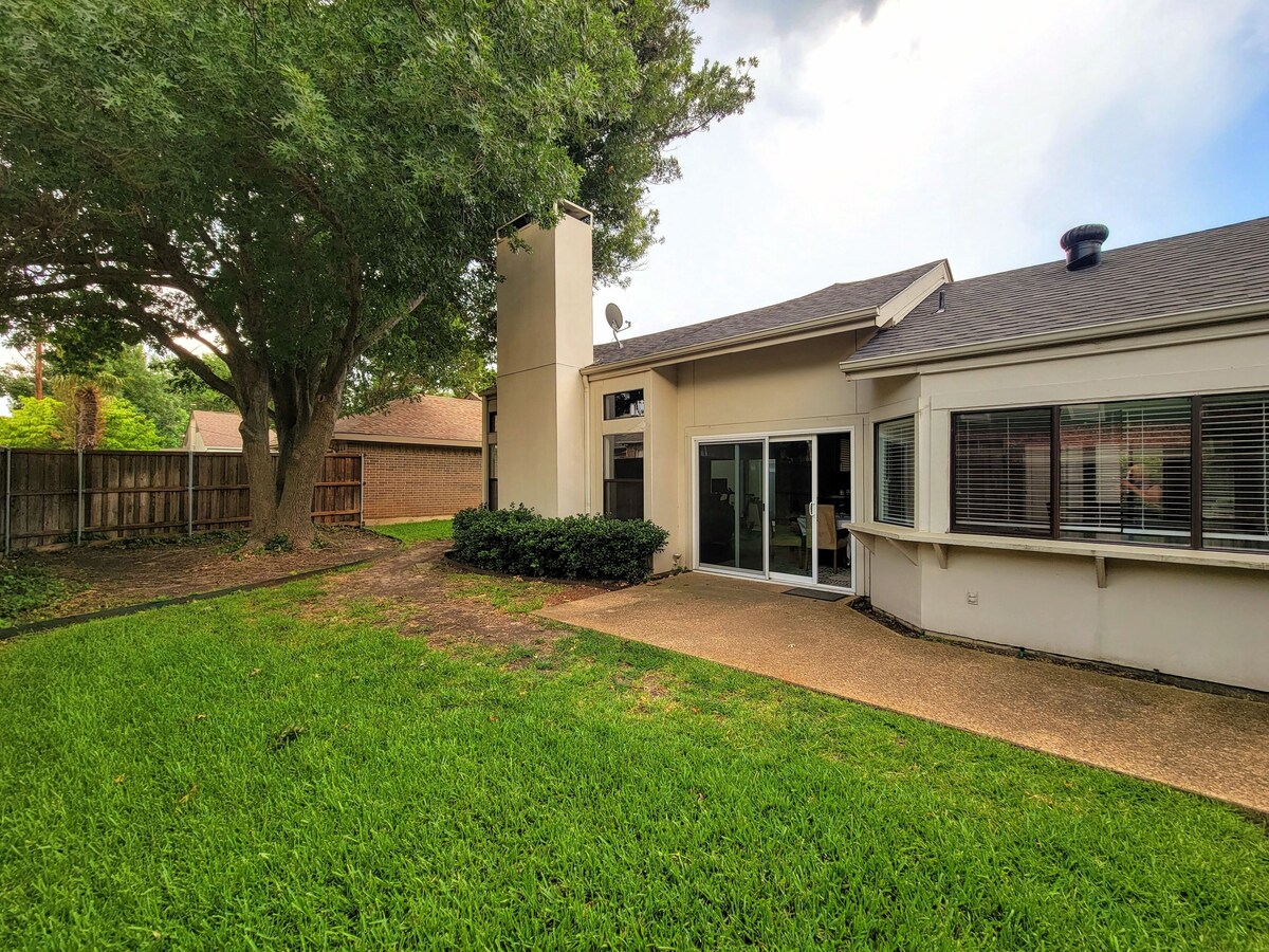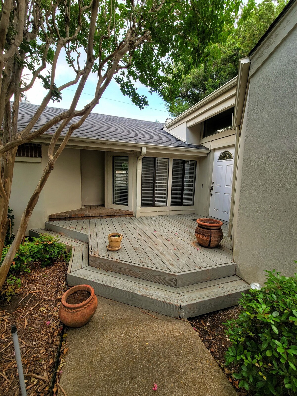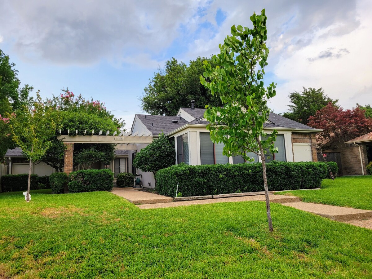Intimate fully updated single story Mid Century 3 bedroom 2 bath with magnificent pergola entry. So much character with LOTS of natural light and high ceilings. Lots of large windows with beautiful refreshing view of back yard, magnificent Oak tree, and front patio. 3 separate sliding glass doors enter the backyard porch. No carpet in the house. Master Bedroom has reclining KING size SLEEP NUMBER bed with beautiful sensual art work. Large Mirrors span the walls. Master bath oasis with luxurious & invigorating RAINFALL SHOWER and full length mirror, jacuzzi tub, floating double vanity and lots of closet space. LEDs light up the wave wall in the background. You will have your own intimate private spa retreat...everyday! FULLY stocked kitchen including dual coffee maker with kpods and RICE cooker! MOST CENTRAL LOCATION IN DALLAS GUARANTEED.<10 minutes from Frisco, <15 minutes from Downtown, <20 minutes to Arlington, <40 minutes to Fort Worth. Tom Thumb and Kroger grocery store <5 minutes away, Starbucks <5 minutes away. Brand new park with dog walk and playground 5 minute walk. Surrounded by million dollar homes in the safest ranked neighborhood in Far North Dallas. Relax, unwind and enjoy! Our prices include all fees. No hidden fees.