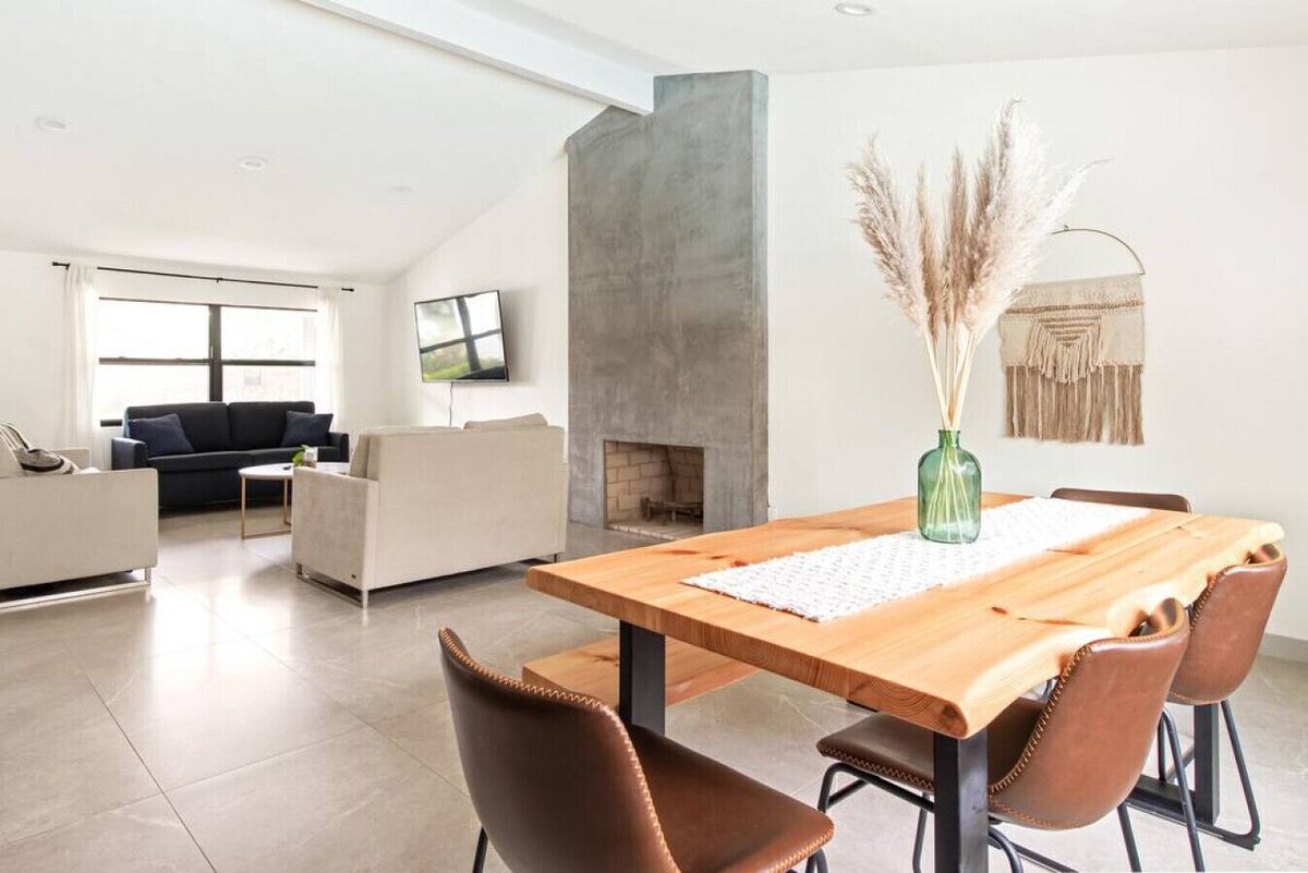Listing description Renovated, cozy and stylish boho home located in a wonderful and safe North Dallas neighborhood. You will fill at home with the huge master bedroom and bathroom with king size bed, open floor plan, boho style, abundance of natural light, hot tub, pool and deck. Great for work, family, friends and pets. Great centralized location with easy access to main highways, shopping and restaurants. 4 min from grocery shops 15 min to dallas love airport 15 min from dfw airport 20 min from downtown HOUSE RULES Treat the house like it's yours ⦁ No parties or events ($500 penalty) ⦁ Pets are welcome, pet fee $50 ⦁ No confetti or a $100 penalty fee will be charge ⦁ Little or no noise after 10:00 pm. ⦁ NO SMOKING inside the house under any circumstances. A fee of $500 will be charged ⦁ No confetti or a $100 penalty fee will be charge SMOKE is allowed OUTDOORS! (Pickup cigarette butts) ⦁ Alarm code is the same as the door code, if alarm will be activated for no reason during your stay and police will come a $150 fee will be charge Cooking Rules No fry foods, turmeric, or curry. Is very hard to get rid of the smells ($200 fee) ⦁ Surveillance or recording devices on property, host has installed (1) security cameras outside only, by the front door. -Please do not have extra people to sleep other than what you made the reservation for otherwise you will be charge a penalty of $50 per person per night GARBAGE RULES ⦁ If have more than 80gal of garbage (this is what trash can holds) $100 fee will be charge ⦁ Garbage truck pass every Tuesdays ⦁ Garbage bins: Are located in the back road, there is a door from the pool that will lead to this road code is 2404 and need to press. PETS RULES ⦁ Pets are welcome, with a pet fee of $50 per pet/stay ⦁ Please pick up after your pet or a $100 penalty fee will be charged ⦁ Sofas are not for the pets. Is really hard to get rid of pet's hair Have fun and enjoy your stay! In case alarm is on enter same code as the door in the panel. Our prices include all fees. No hidden fees.