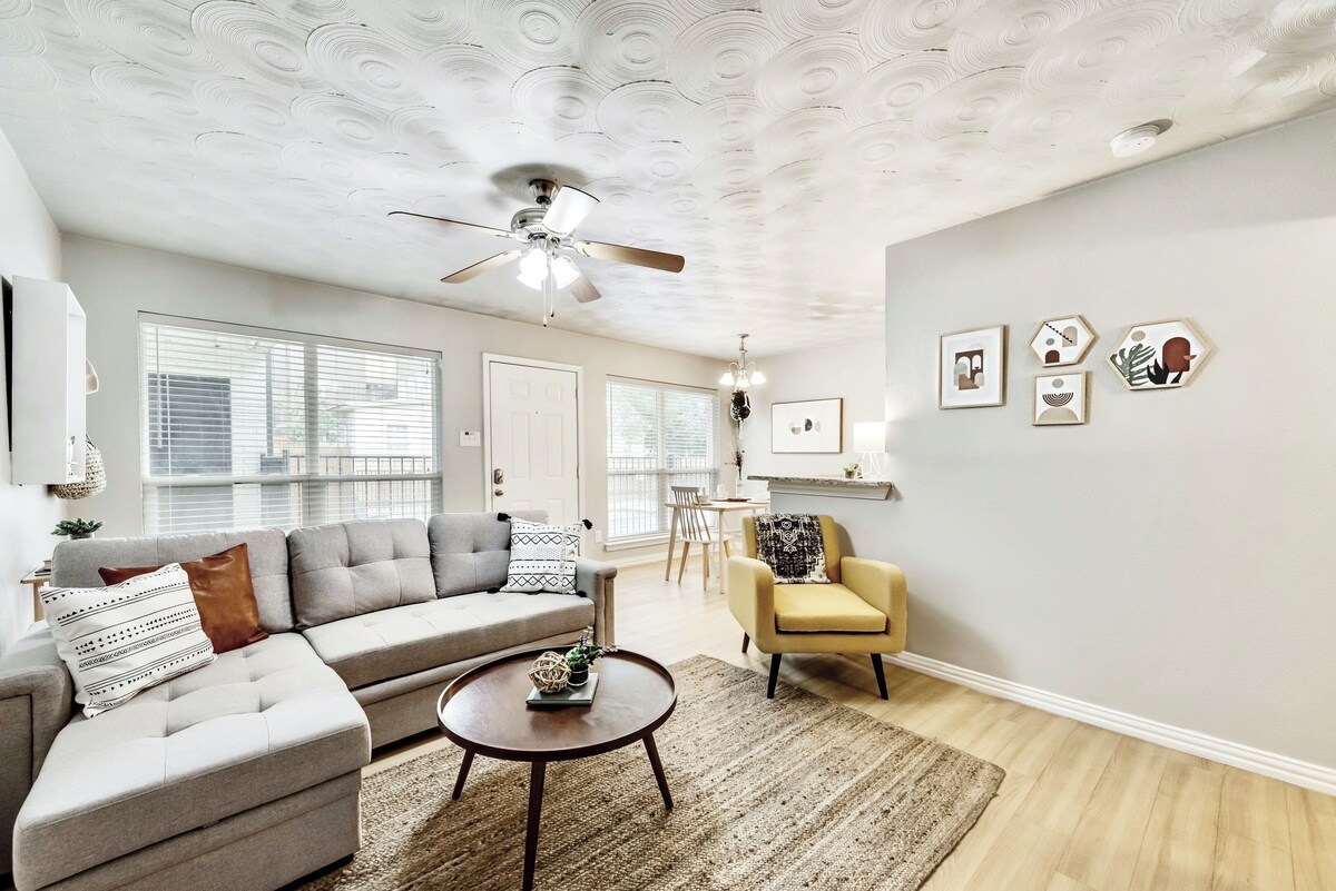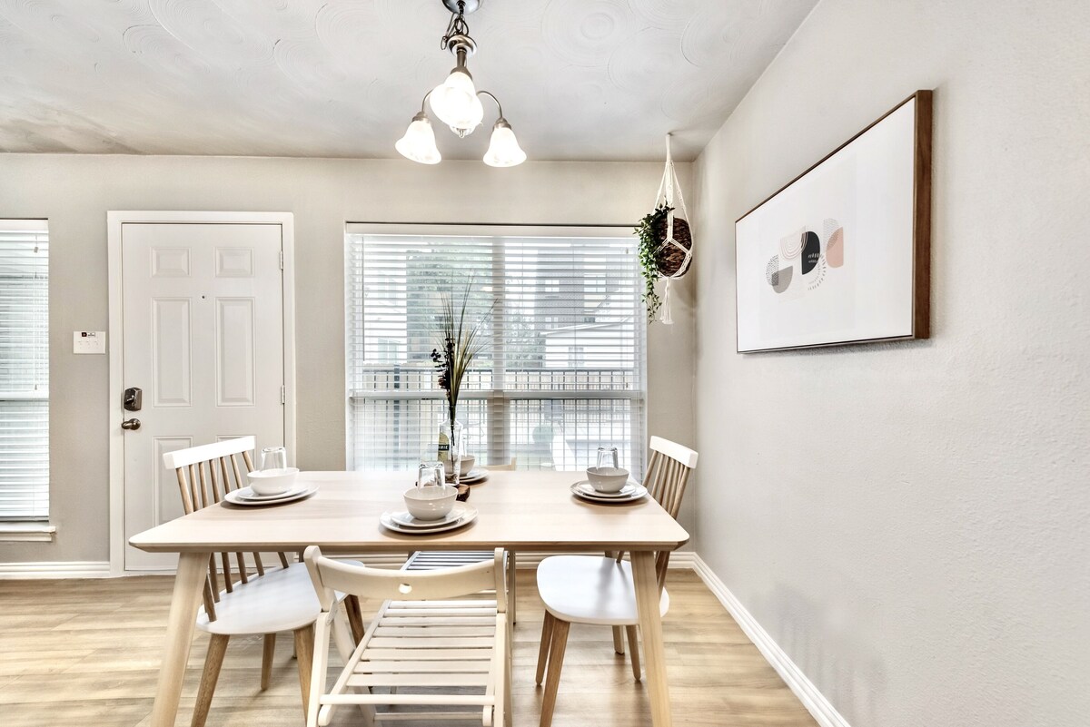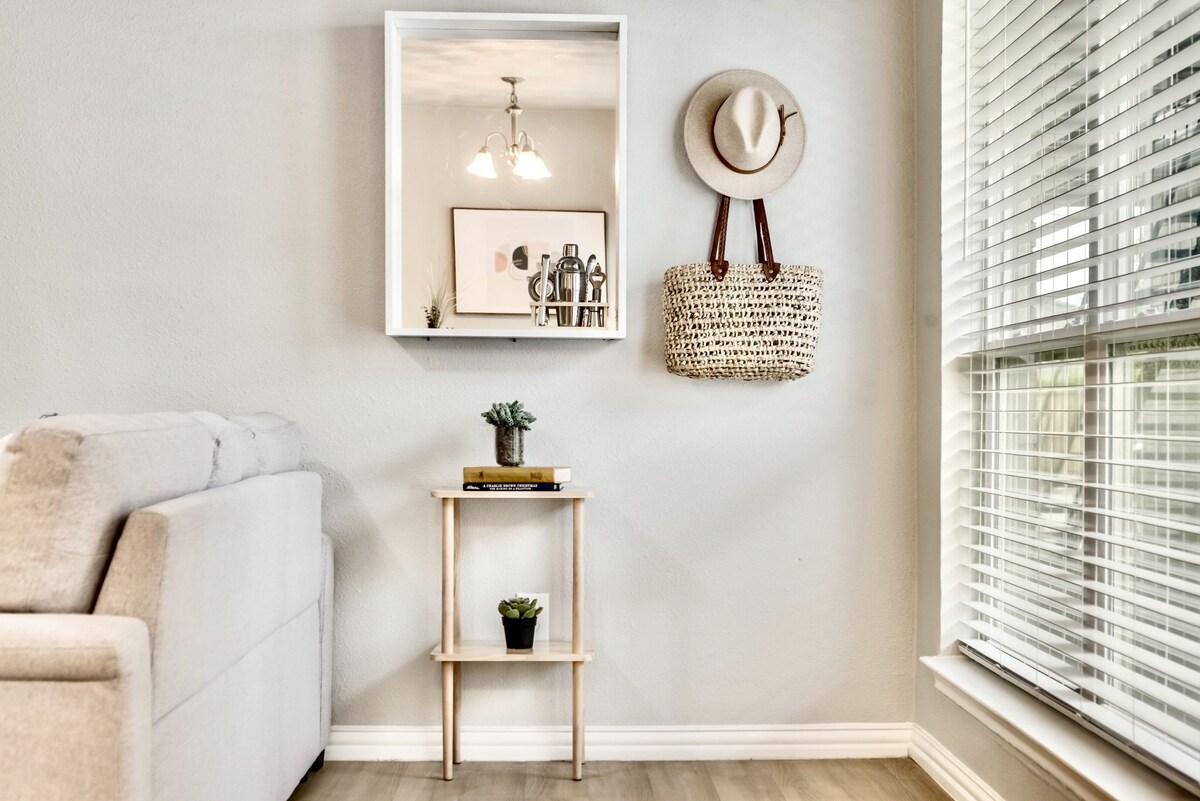 Recharge or work from home in our Dreamy Urban Flat. This inviting space is a fusion of good city vibes and bohemian decor. Welcoming guests with fresh linens, comfortable living area, a kitchen stocked with cooking essentials, free WiFi, & access to our spa pool. Easy access to some of Dallas' favorite hotspots. In appreciation for booking, our guests can enjoy a free coffee at Toasted Coffee Shop. PLUS, we include admission into the Award-Winning Dallas Arboretum. Scroll down for details. Cozy up in this trendy Dallas apartment; furnished with a plush queen size bed & comfortable sleeper sofa. Also enjoy our cooking and dinning essentials with stainless steel appliances in our fully stocked kitchen, as well as bathroom amenities. Plenty of closet space, reliable wifi, secured parking, and more. We always welcome every guest and enjoy hosting. Guests have access to the entire apartment. Access to gated parking and pool area. If you are bringing a furry friend there is a $25 non-refundable pet fee that is requested the day of your checkin. This fee helps us keep Airbnb's hosting standards and cleaning protocols. Upon booking, see the house manual for details regarding your Complementary Coffee from Toasted. Message your host to secure your spot to the beautiful Dallas Arboretum. Admission Time: 10am MON-SAT *request must be made 48 hours in advance, scheduling is based on 1st come, 1st served. We take pride in hosting our guests; therefore our apartments are up-to-date with city inspections. Also, our apartments are serviced on a regular basis for pest control. However, we are located in the great state of Texas, and as guests enter and exit the apartment or building bugs can come in from the outside, this doesn't happen often, but want our guests to be aware. Looking forward to welcoming everyone to the Global Cup — the world’s biggest soccer tournament! Our prices include all fees. No hidden fees.