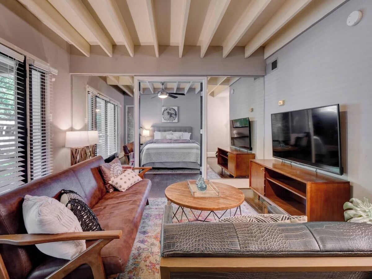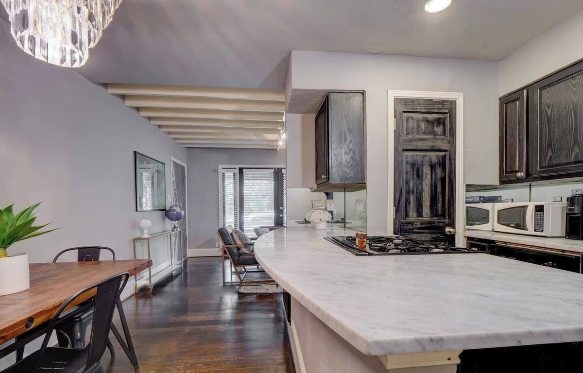 Discover Dallas’ only furnished rental that blends luxury with wellness. Sleep on a plush hybrid Queen mattress wrapped in 300-thread-count Egyptian cotton sheets, wake to blackout drapes, and refresh with 800 GSM Turkish towels. Enjoy 300 Mbps Wi-Fi, Smart TVs, a full kitchen, Nespresso, and eucalyptus diffusers. Nearby off-site access includes a resort pool, hot tub, dry sauna, cold plunge, cardio gym, outdoor kitchen, and an elegant coworking lounge. Guests enjoy a seamless, private stay powered by Ritzy Room hospitality. Our team is available daily for questions or special requests. You can reach us anytime by phone, text, or the booking platform’s messaging system, and you’re welcome to visit our Leasing Office at 5923 Gaston Ave between 9 AM and 6 PM for in-person assistance. All reservations require guest screening and identity verification prior to check-in to ensure a secure and welcoming experience for every guest. Situated in the heart of Dallas’s historic Lakewood neighborhood, this residence offers a perfect blend of classic charm and modern convenience. Lakewood is celebrated for its tree-lined streets, beautifully preserved architecture, and close-knit community vibe. You’re minutes from White Rock Lake, the Dallas Arboretum, and the vibrant shops and restaurants of Lower Greenville, Knox/Henderson, and Deep Ellum. Lakewood’s timeless homes—ranging from elegant Tudors and Craftsman bungalows to Mediterranean and Colonial Revival estates—reflect the neighborhood’s rich history as one of Dallas’s most coveted enclaves. Enjoy morning walks beneath a canopy of mature trees, bike along scenic lake trails, or explore nearby cafés, wine bars, and boutique dining. With quick access to downtown, Uptown, and major business districts, this location combines relaxed sophistication with unbeatable city connectivity. The only furnished rental in Dallas offering this level of luxury amenities: Full blackout drapes in every bedroom High-speed Wi-Fi (300–400 Mbps download / 40–50 Mbps upload) Smart TVs with full streaming services 800 GSM Turkish cotton towels Down-and-latex pillows for perfect support Fully equipped modern kitchen Nespresso machine with complimentary coffee pods Calming eucalyptus scent diffusers Off-site wellness retreat with resort-style and waterfall pools, jacuzzi, dry sauna, and cardio fitness gym Outdoor kitchen, fireplace, and fire pits Ping-pong table and dedicated off-site working lounge with coffee and curated music Complimentary bicycles available at the off-site courtyard for easy property-to-property rides Whole-home water purification system Experience refined comfort in this beautifully updated 1-bedroom retreat in Dallas’s historic Lakewood neighborhood. The open floor plan offers a stylish living area with a smart TV, a fully equipped modern kitchen, and a spa-inspired bath. The serene bedroom features a plush queen bed with premium linens, while large windows bring in natural light and showcase the tree-lined charm of Lakewood. Perfectly located near White Rock Lake, Lower Greenville, and the city’s top dining, shopping, and cultural attractions. Located in the heart of Dallas’s Lakewood neighborhood, the property offers excellent connectivity. Downtown, Uptown, and Deep Ellum are less than 10 minutes by car or rideshare, and Lower Greenville and Knox Henderson are under 5 minutes away. Major highways—including I-30, US-75, and the Dallas North Tollway—are just minutes from your door for quick access across the metroplex. Public transit is convenient: DART Bus Route 24 stops a short walk from the property, linking directly to Downtown and the Cityplace/Uptown light-rail station. Cityplace/Uptown DART Rail Station (Red, Blue, and Orange lines) is about a 7-minute drive for direct service to Downtown, the Arts District, and DFW Airport. Abundant rideshare options (Uber, Lyft) and nearby bike lanes make getting around easy without a car. Whole Foods, Starbucks, and neighborhood restaurants are all within walking distance, while scenic White Rock Lake and the Dallas Arboretum are a quick bike ride away. Enjoy secured on-site parking and a welcoming front porch with views of historic Munger Place. Inside, relax in the open-concept living area with a large smart TV, fully equipped kitchen, and modern dining space. The loft bedroom offers a plush queen bed with Egyptian cotton linens, while the spa-inspired bath features a relaxing tub/shower combo. Your stay includes complimentary access to a nearby wellness retreat with resort-style pool, hot tub, dry sauna, and cold plunge. Our prices include all fees. No hidden fees.