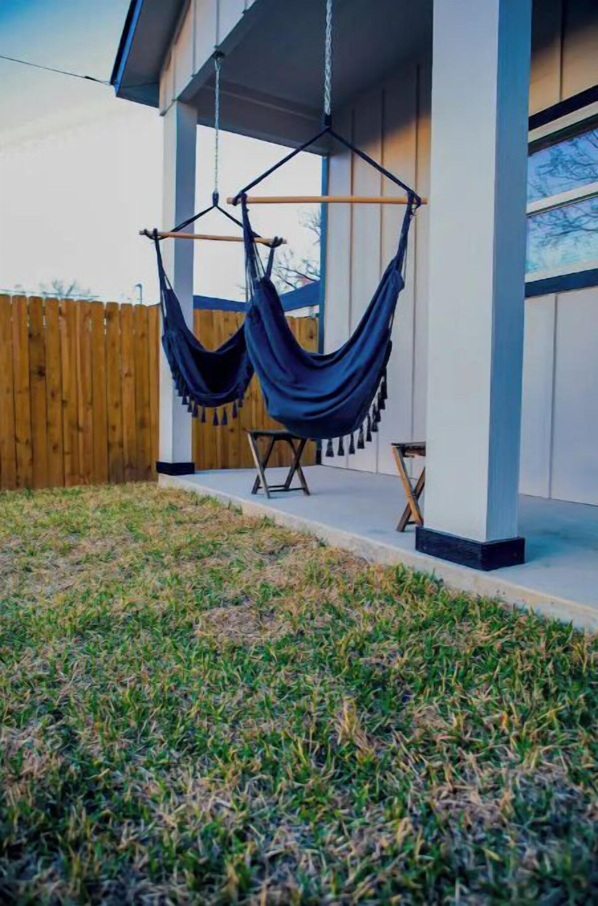 About This Space Welcome to this modern 2022-built home, perfectly located near some of Dallas's top attractions, including Downtown Dallas, the lively Bishop Arts District, the American Airlines Center, and the family-friendly Dallas Zoo. This newly furnished, single-level home offers 2,000 square feet of space designed for comfort, relaxation, and entertainment. It’s located in a dynamic, up-and-coming neighborhood, featuring a huge backyard perfect for gatherings and a luxurious primary suite with a stand-alone soaking tub for ultimate relaxation. The Space This home is designed to make your stay as enjoyable and stress-free as possible. Please note: --Maximum Occupancy: 12 guests. A $25 fee per guest per night applies for more than 8 guests. Guests include those staying and/or visiting during the reservation. --Strict No Party Policy: Open-invite parties or events are strictly prohibited. Violation will result in a $1,000 fee, immediate eviction, and termination of the reservation. --Rental Agreement & Government ID Required: A signed rental agreement and government-issued ID for all adult guests are required prior to check-in. Features You'll Love: ✔Primary Suite: Relax in a stand-alone soaking tub or under the waterfall walk-in shower. ✔Outdoor Entertainment: Enjoy the large backyard equipped with a gas BBQ grill and hammocks—perfect for lounging or family fun. ✔Entertainment Ready: Kick back with the 70\ ,