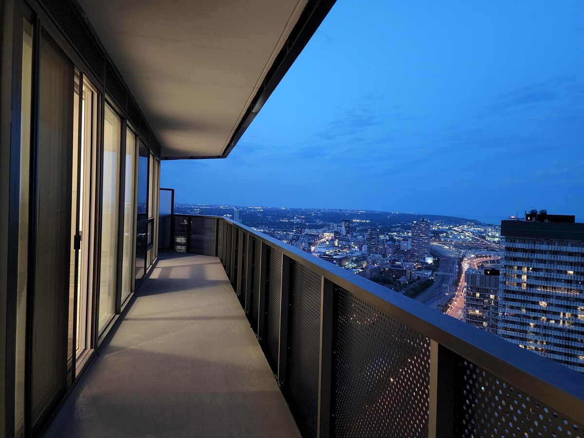 New Sugar Wharf Condominiums - Spacious 1-bed 1-bath, west facing on the 58th floor with approximately +200 sqft balcony wrap around the unit. • 9’ ceilings, floor to ceiling thermally-insulated energy efficient windows all around the unit. • Open concept kitchen and living room, in-suite laundry, stainless steel kitchen appliances included. Hardwood flooring, stone counter tops. • FarmBoy Supermarket next to the building, Loblaw supermarket 2 minutes walking distance. • Please call/text/whatsapp Melissa at 647-688-5794 if interested. • Building and in-suite amenities Welcoming grand 2-storey lobby with place seating lounge and 24-hour concierge WiFi in all amenity areas, lobby and elevators Dedicated on-site property management team State-of-the-art fitness centre including: aerobics studio; spinning room; and basketball court Indoor lap pool Two co-work/meeting rooms Party room with kitchen and separate bar area, seating and formal dining area Kids party room and play area Social/games lounge and three separate theatre rooms Hobby/art studio, lego rooms and music room Indoor hammock lounge Expansive outdoor landscaped terrace with BBQ and dining areas Two luxurious hotel-styled guest suitesShow less Our prices include all fees. No hidden fees.