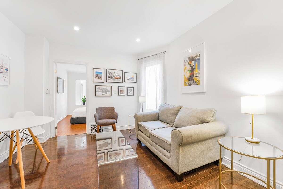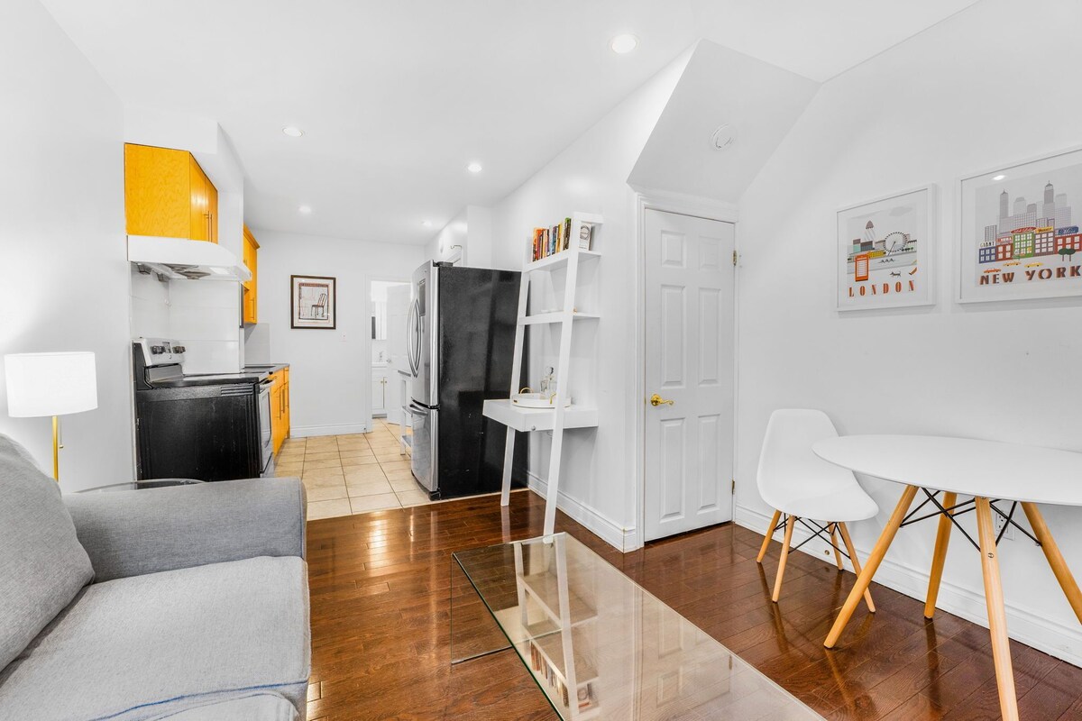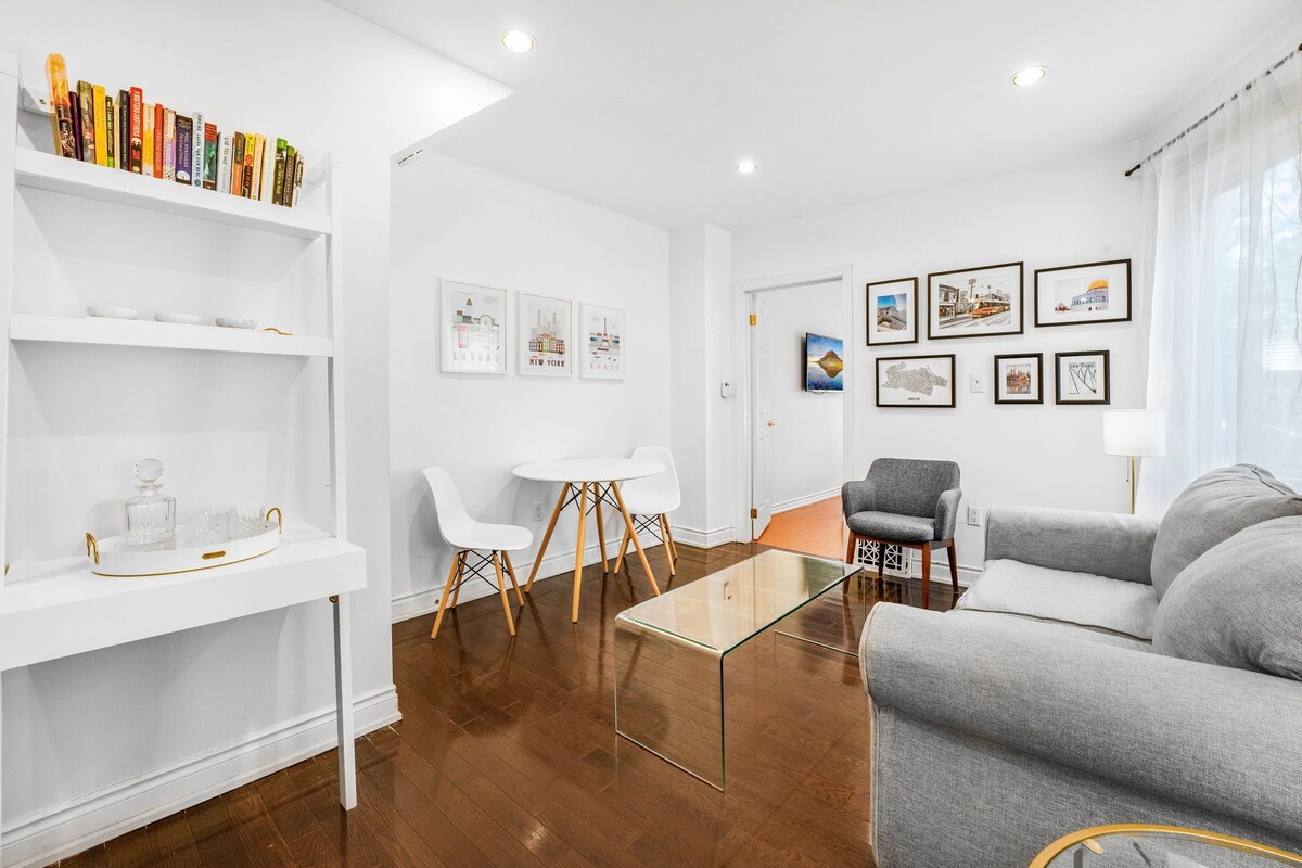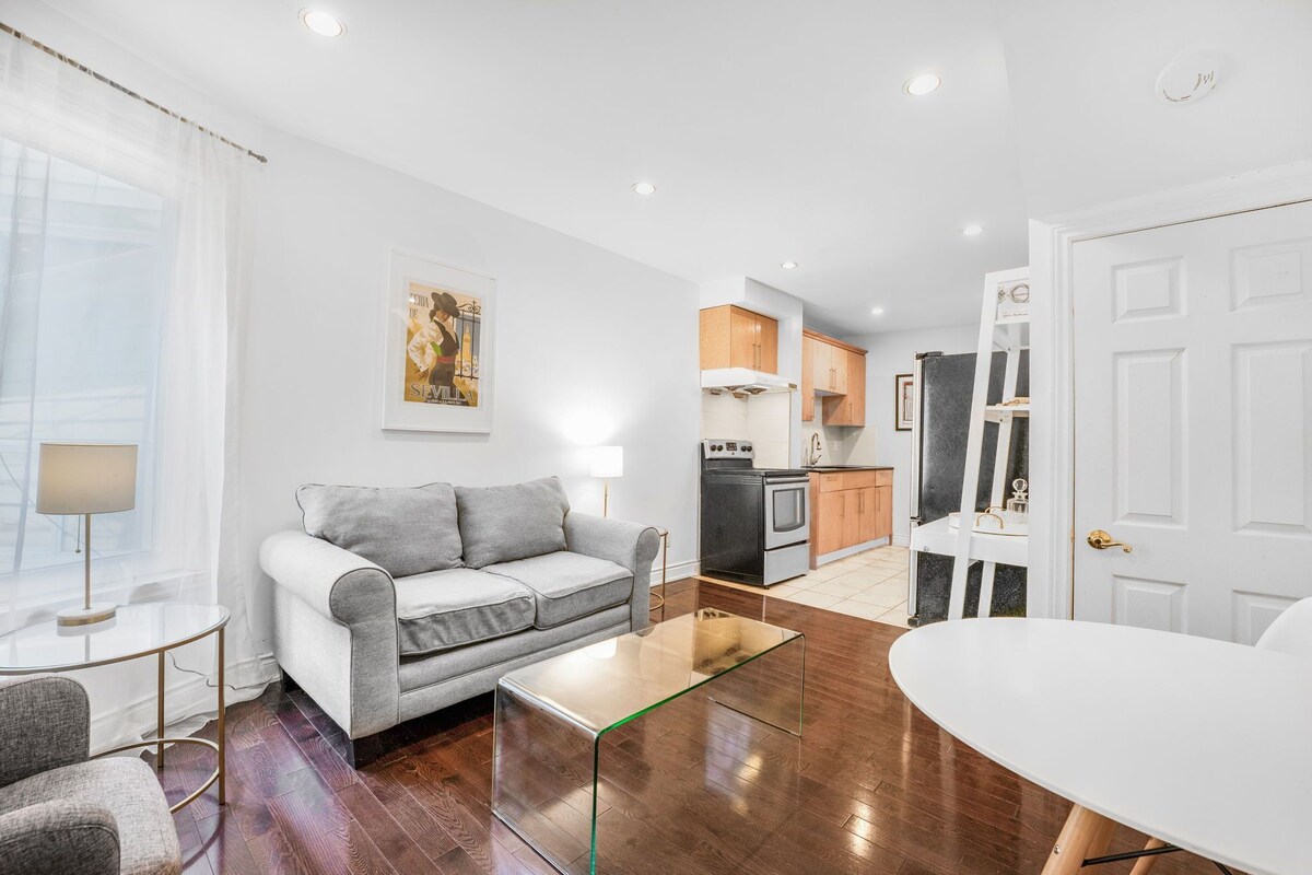 Welcome to our comfortable one-bedroom apartment in the heart of a charming neighbourhood. With hip coffee shops, parks and restaurants minutes away, you'll be immersed in the local atmosphere. Inside, the furniture creates a warm and cozy haven for relaxation, including a fully equipped kitchen and a comfortable dining and living room. Outside enjoy a backyard shaded by lush trees to have coffee. Whether you're a couple, solo traveler, or tourist, this space will be your home away from home. Our prices include all fees. No hidden fees.