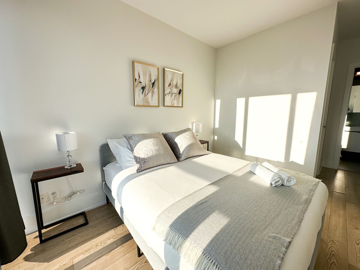 Find peace and tranquility in Downtown Toronto in this spacious 2 bedroom / 2 bathroom condo that offers all the necessities for a family. An immensely welcoming space with a living area close to Toronto’s best attractions including the CN Tower, Ripleys Aquarium, Beanfield and Enercare Centre, Budweiser Stage, ScotiaBank Arena and the Rogers Center. Centrally located about 5 mins away from Union Station by car and 10 mins by walking, Pearson International Airport 20 minutes, and a 5 min drive from Billy Bishop Airport. Perfect for the solo traveler, couples, families or those in town for business. → High-speed Wi-Fi. → SmartTV in the Living room on which you can access your Netflix and YouTube accounts. → Bedroom feature queen beds to ensure an enjoyable sleep. → Full sets of hotel quality sheets and duvets for the beds and enough towels. → The kitchen is fully equipped with appliances including a large fridge and stove. → The bathroom includes a shower. → A washer and dryer are also en suite for guests to use. **No parties allowed** No loud noise. Zero tolerance to noisy guests and will result in the removal of your booking without refund. Our prices include all fees. No hidden fees.