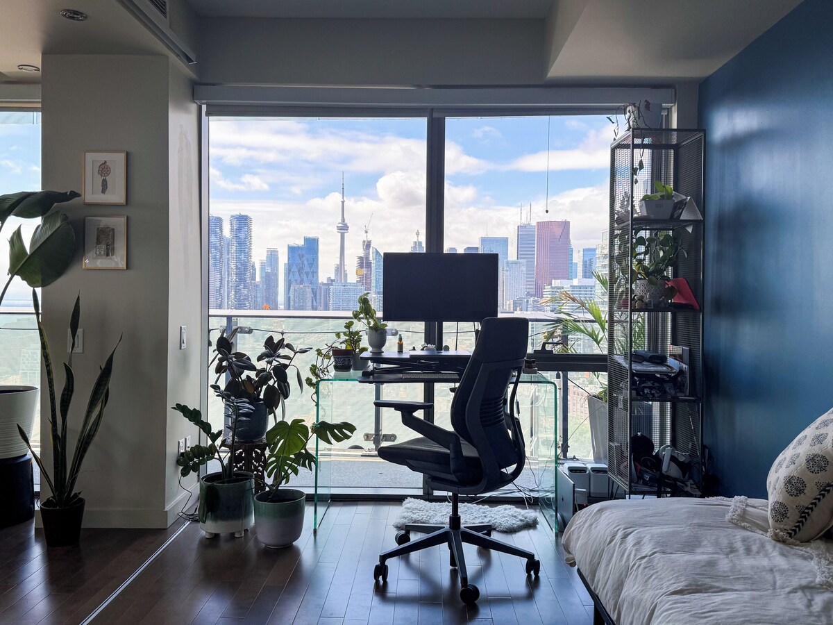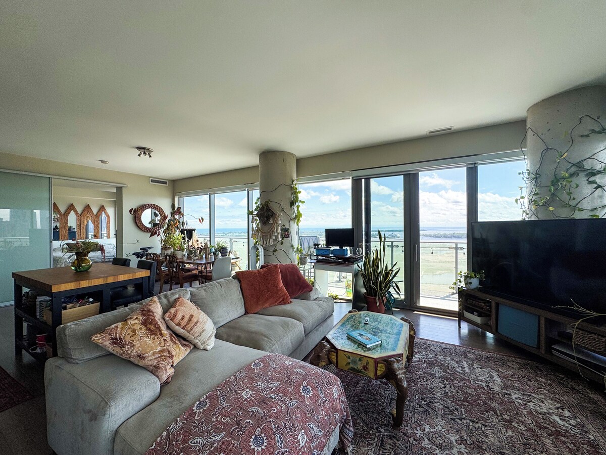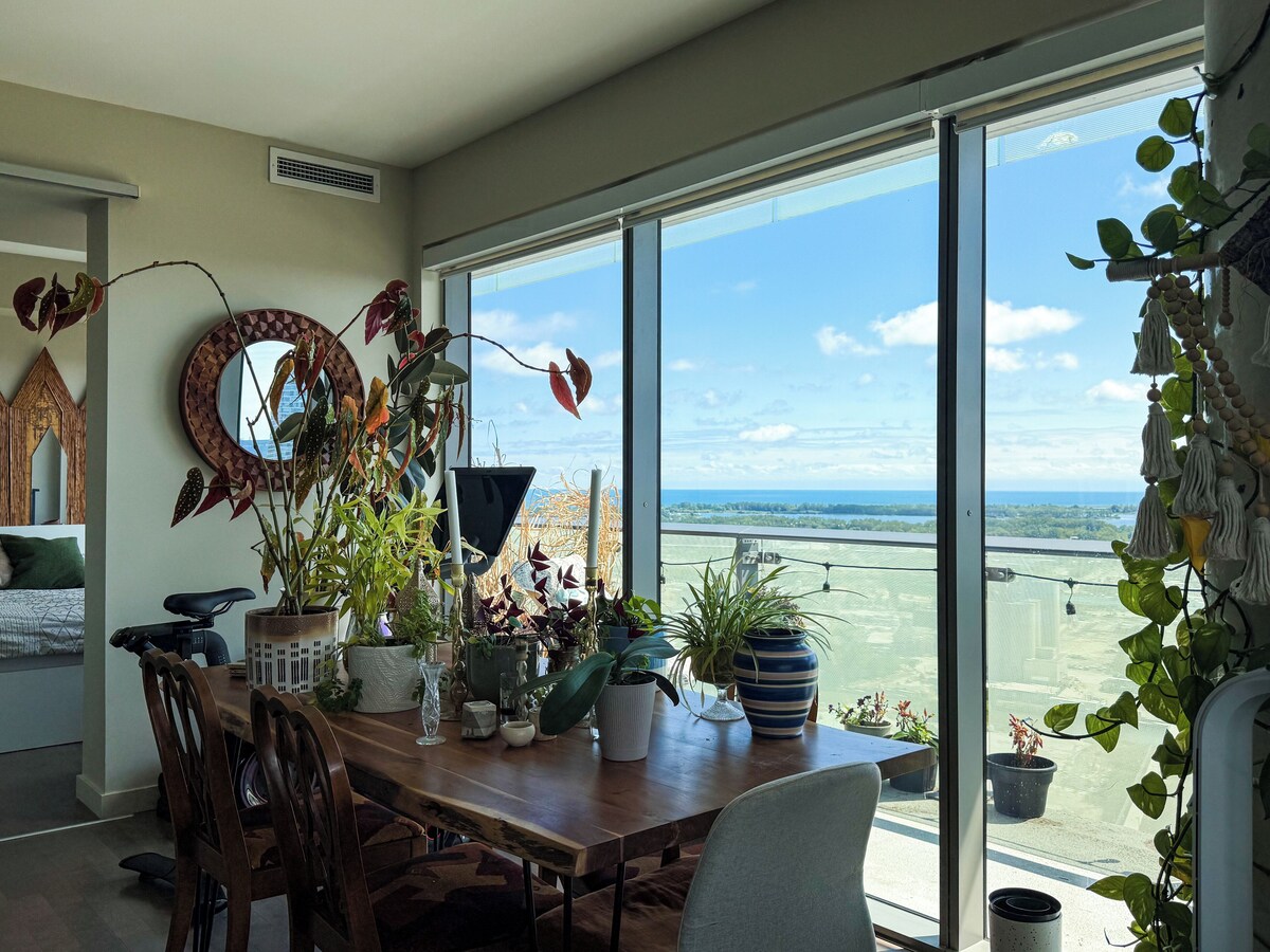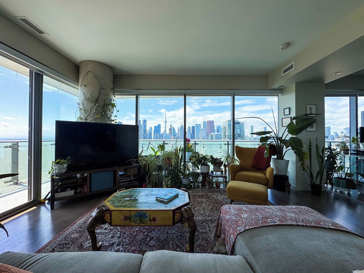 Experience unparalleled luxury in this stunning 2-bedroom, 2-bathroom corner condo located in Toronto's iconic Distillery District. This fully furnished home is a plant lover's paradise, filled with lush greenery that enhances the tranquil atmosphere. The expansive wrap-around balcony offers panoramic views of Lake Ontario and the vibrant Toronto skyline. Step inside to discover a a sun-soaked living space, with floor-to-ceiling windows that capture breathtaking views from every angle. The master bedroom features a luxurious soaker tub, perfect for unwinding after a long day. The open-concept design seamlessly blends indoor and outdoor living, creating an airy and inviting atmosphere. It's prime location puts you steps from trendy eateries, boutique shops, and cultural attractions, while the nearby King streetcar and nearby DVP highway offers easy access to the downtown core and beyond. Don't miss this rare opportunity to live in one of Toronto's most sought-after neighborhoods, where urban convenience meets serene waterfront living, surrounded by nature. This building also offers state-of-the-art amenities, including a fully equipped gym, yoga studio, ping pong and billiards room, and seasonal outdoor patio that for residents to enjoy the pool, hot tub, and barbecues. Our prices include all fees. No hidden fees.