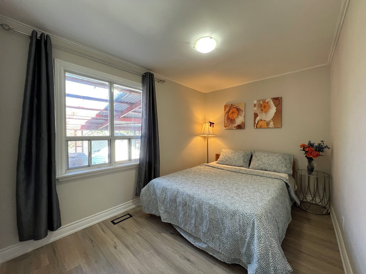 Quiet, Safe , peaceful place to stay , easy to access highway 401. Walk around 13 minutes to Warmart , Nofrill . Dollar store, very convenient . Three minutes walk to the public bus station, can park three cars on the driveway. Our prices include all fees. No hidden fees.