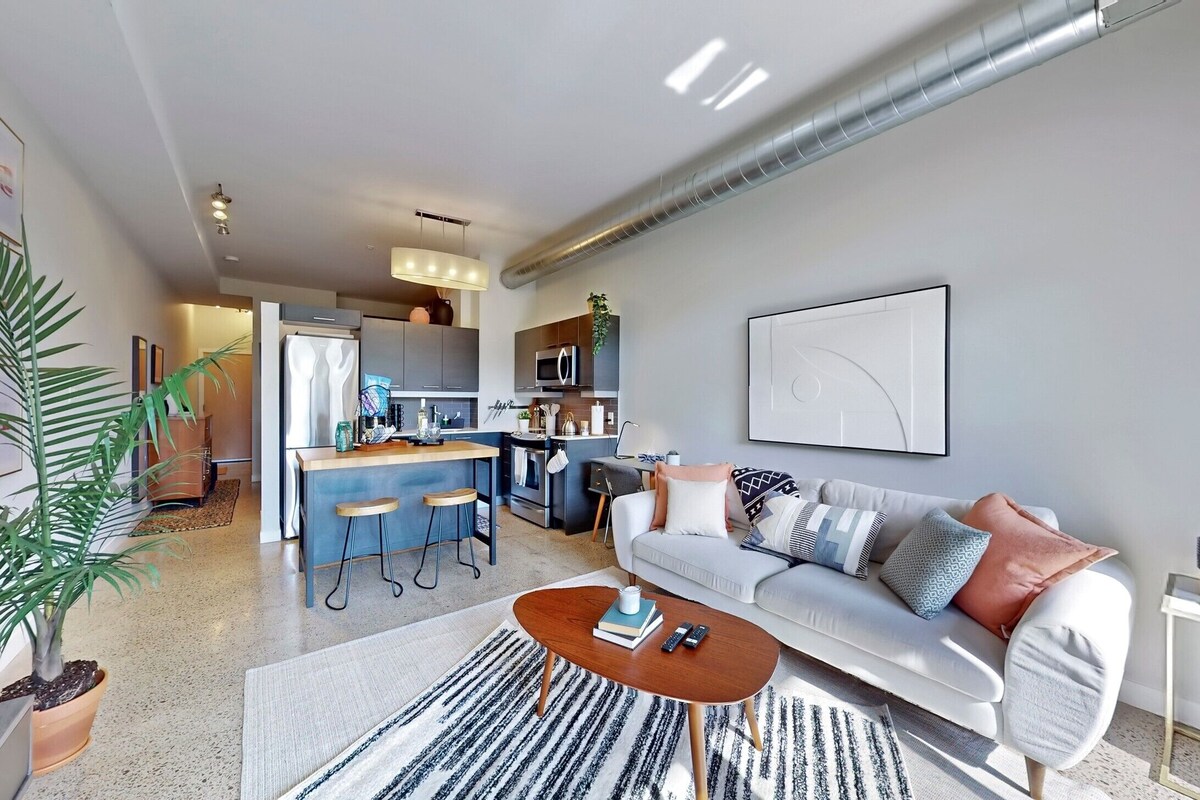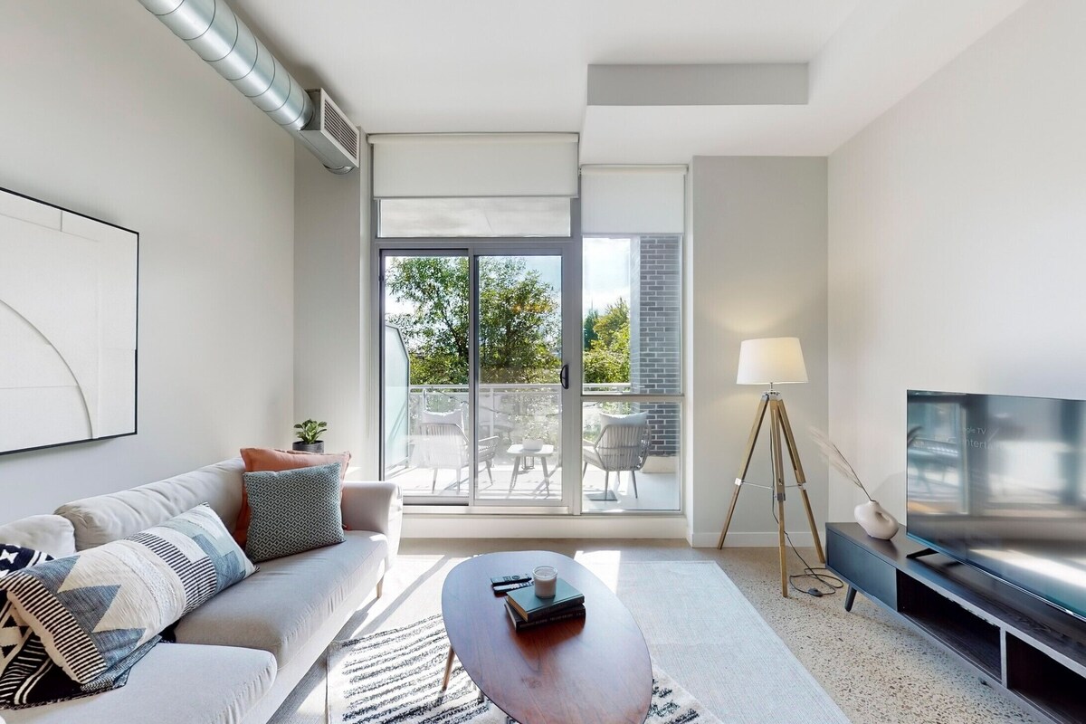 Stylish, soft- loft tailored for professionals. 10 ft ceilings w fully equipped kitchen. Modern furniture, 58\