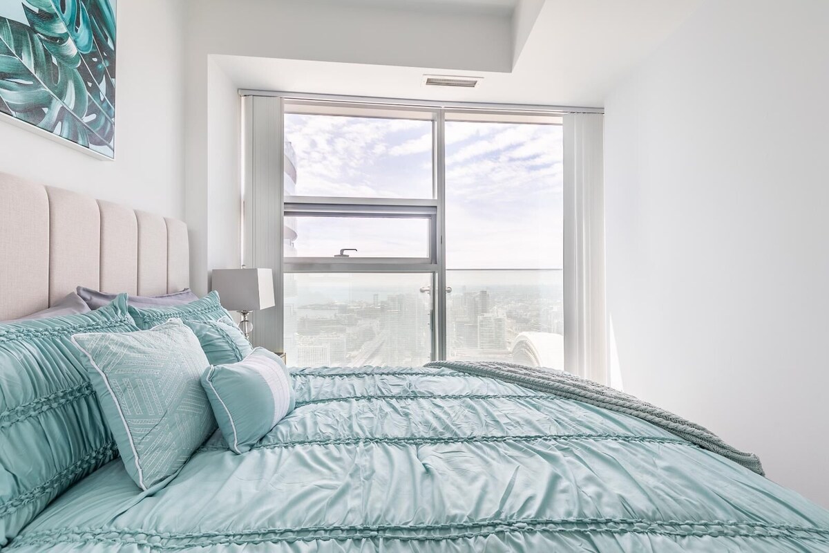 The Heart of the City. Prime Location. Beautiful 1 bedroom Condo with Floor to Ceiling Windows and Amazing 53 Floor View to Downtown, Lake Ontario and CN Tower . Steps from the Scotia Bank Arena and Union Station. Walking distance to Skydome, CN Tower, Aquarium, Financial District and hundreds of restaurants. Close to Eaton centre and Queen street fashion district. Easy access to Subway and GO station and others. Grocery store, LCBO, TD bank nearby. The space This comfortable suite has everything you need to make you feel right at home. Fully functional kitchen with supplies (Tea, coffee, kettle, coffeemaker, toaster). Washer and Dryer with supplies. Bathroom with towels, shampoo, conditioner, body wash, hair dryer and other toiletries that you may have forgotten at home. Guest access Access to the Pool, Gym is allowed for 28+ days stay. Other things to note According to the condo rules we must provide information about our guests to the condo management prior to their arrival, i.e. every guests` names and their ID details, vehicle and license plate numbers (in case you require a parking spot). We kindly ask you to send us your selfie with your ID in your hands as an anti fraud measure. Guests whose names or ID do not match the information given ARE NOT allowed into the building. These are mandatory requirements, if you do not agree to provide this information, we can`t guarantee a refund. Paid underground parking (in/out privileges) is available upon a request and not included in the price. The price is $10 per night if you book for at least 15 nights. Please request in advance as it could be booked. Pets are allowed in the apartment. If you plan stay with pets, please, confirm the opportunity prior to booking. Pets fee $10 per night for 1 pet. We have Travel Crib (for baby 0 18 month) and Bed Rails. $5 per one item per night. Book, please, in advance. ***Deposit*** All guests are required to leave a refundable deposit of $500. If at any case smoking inside occurs, there is damage to the unit or other house rules are violated, this deposit will not be refunded. The unit entrance is equipped with a smart lock which makes the check in check out process super easy. Whether your are running late or you need to leave early in the morning, there's no need to wait to get or return the keys. We can lock or unlock the suite door remotely using the smart lock. Dear Guest, Please take a moment to read the unit policies: The minimum age for booking is 18 years. All guests are required to pay a $500 security/damage deposit prior to check in. The deposit is refunded within 7 days after check out unless damage, smoking or excessive noise occurs during your stay, in which case damage deposit will not be refunded. Check in is after 3PM, check out is before 11AM. Late check out may be possible but we must be notified well in advance. Your request will be reviewed and accommodated if possible. Pets are allowed in the apartment. If you plan stay with pets, please, confirm the opportunity prior to booking. Pets fee $10 per night for 1 pet The property is not a hotel. The security desk and the concierge neither support guests nor provide any information related to your reservation. Please provide us with a photo of valid your ID: international passport, driver s license, permanent resident card and a photo of yourself with the ID (a selfie with the ID). Please note that for our foreign guests we require a passport as an ID. * NO PARTY POLICY The unit is equipped with video surveillance to the front door ONLY and a noise detector (no cameras are inside the unit). The front door will be checked for the number of guests as well as the noise level to avoid any type of parties. We have the right to cancel your reservation immediately without any refund if the number of guests will exceed the number specified in the reservation. If you plan to invite any additional guests, please inform us in advance. ** NO SMOKING POLICY The unit is equipped with a remote smoke detector to detect any sources of smoke and notify us remotely. Any type of smoking (cigarettes or marijuana) is prohibited inside the unit or building. If the alarm is triggered and we will discover the smell of any type of smoke, GLOBALSTAY has the right to cancel your reservation immediately and charge you: 150$ service call 200$ cleaning fees Please contact us if you have any questions. Our team will be more than happy to resolve your issues and provide you with a comfortable stay. Our prices include all fees. No hidden fees.