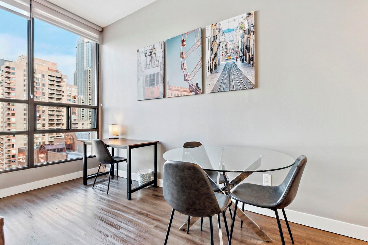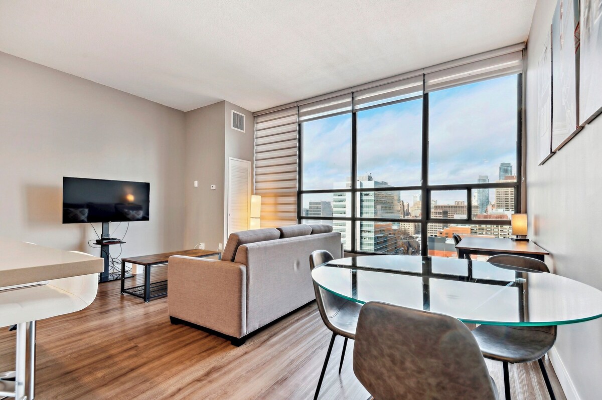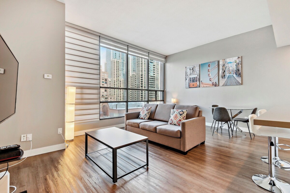 A beautiful and centrally located suite. Located at Gerrard St W and University Ave, this location is nearby the major hospitals. Short walks to Toronto General Hospital, Sick Kids Hospital, Princess Margaret Cancer Centre, UHN, and St. Michael’s Hospital. This 1+1 bedroom fully furnished is modern, clean and perfect for a medical stay. Sky View Suites furnished rentals are centrally located in the heart of downtown Toronto. All of our suites are professionally managed, which means consistent service, unit maintenance and cleanliness for your stay. Our goal is your comfort and we will do everything to make your stay a great experience. We manage over 230 properties and all of our suites and layouts are very similar. Photos on this listing or of a sample suite. Suite assigned will either be the same as the suite in the photos or better. All 1+1 bedroom suites at this location include/are: • fully furnished condo with full-sized kitchen • in-suite full sized clothes washer and dryer • VIP Cable and Internet • All utilities and no caps • 7 day a week ground service support • Mon to Fri helpdesk support 24 hours and 9am to 2am on Sat and Sun • Modern finishes The Amenities: • state of the art fitness centre • spin room • yoga room • indoor pool • sauna • sun deck • complimentary wifi throughout amenities • work and study spaces • indoor and outdoor movie theatres • Rooftop dog run and pet cleaning spa • BBQ deck • 24 hour security with key fob access to building • modern lobby Gerrard West is a perfect location for anyone who wants to experience the best of what Toronto has to offer. The Area: • less than 5 min walk to the grocery store • less than 5 min walk to all major hospitals • less than 5 min walk to the subway • 10 min public transit commute to Yorkville • 30+ restaurants within a 5 min walk Pets - allowed Smoking - not allowed We have a 24/7 KeyCafe located at our office, 142 Simcoe Street. All key picks ups happen there. This avoids a stressful delayed flight and not having to worry for the person you are meeting to leave because of the delayed flight. This also avoids a concierge desk losing your keys or not releasing your keys. Simple enter a stop to this location before your main location. All of our suites are never more than a 5 min drive to where you are staying. The street where our office is located is not busy and the office is a ground level storefront. This means that you can easily pull over in front of it, grab your keys and be on your way! We serve hundreds of corporate clients who really love the convenience and security of our KeyCafe. You also have access to our team in case you have trouble getting your keys. As a professional business, we have supports in place to make your stay feel supported and trouble-free. When you confirm your booking, we will give you the phone number and email address to connect directly with our helpdesk. With staff available for questions 7 days a week 9am to 2am, you will feel supported during your stay. We have a 24/7 KeyCafe located at our office, 142 Simcoe Street. All key picks ups happen there. This avoids a stressful delayed flight and not having to worry for the person you are meeting to leave because of the delayed flight. This also avoids a concierge desk losing your keys or not releasing your keys. Simple enter a stop to this location before your main location. All of our suites are never more than a 5 min drive to where you are staying. The street where our office is located is not busy and the office is a ground level storefront. This means that you can easily pull over in front of it, grab your keys and be on your way! We serve hundreds of corporate clients who really love the convenience and security of our KeyCafe. You also have access to our team in case you have trouble getting your keys. As a professional business, we have supports in place to make your stay feel supported and trouble-free. When you confirm your booking, we will give you the phone number and email address to connect directly with our helpdesk. With staff available for questions 7 days a week 9am to 2am, you will feel supported during your stay. Our prices include all fees. No hidden fees.