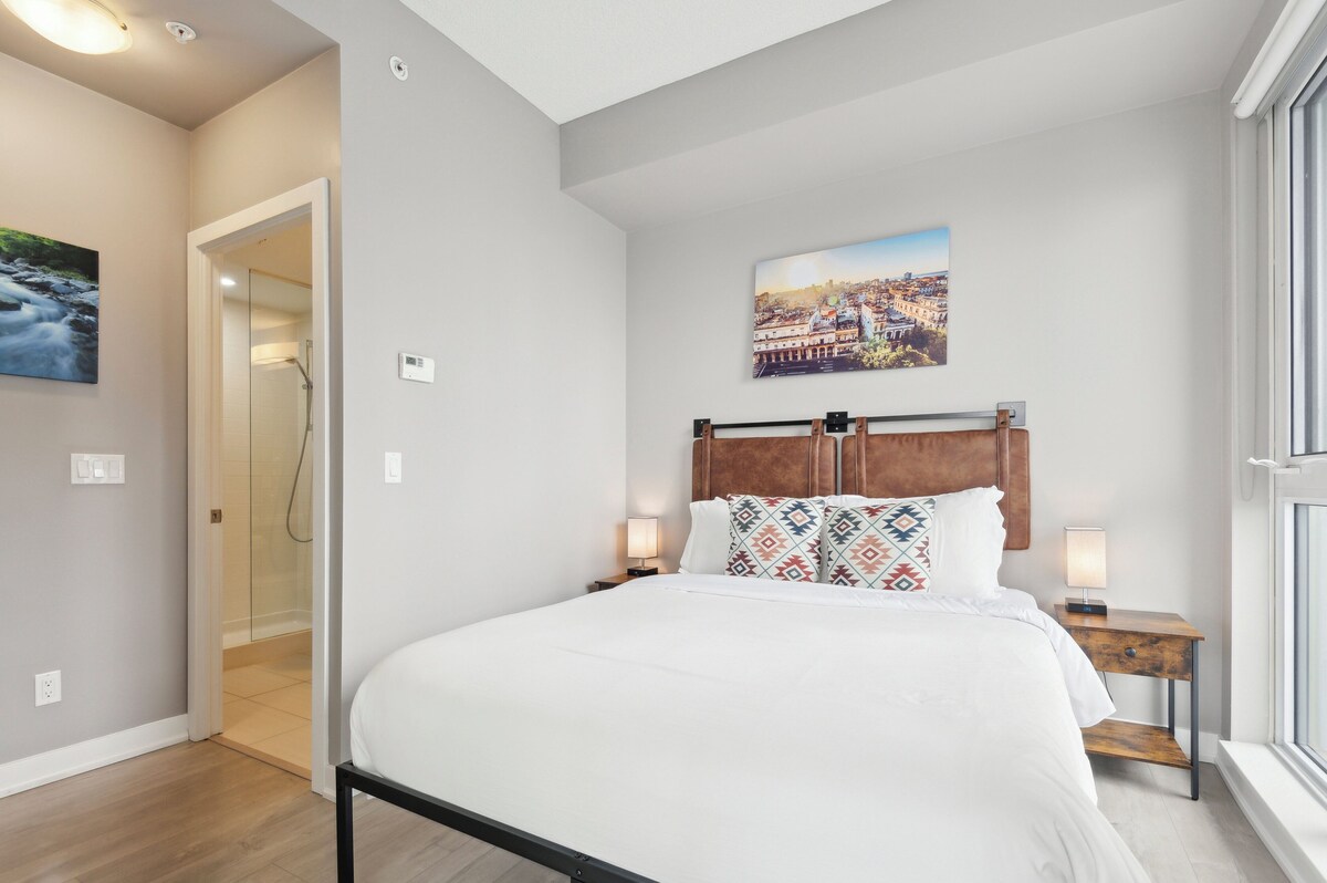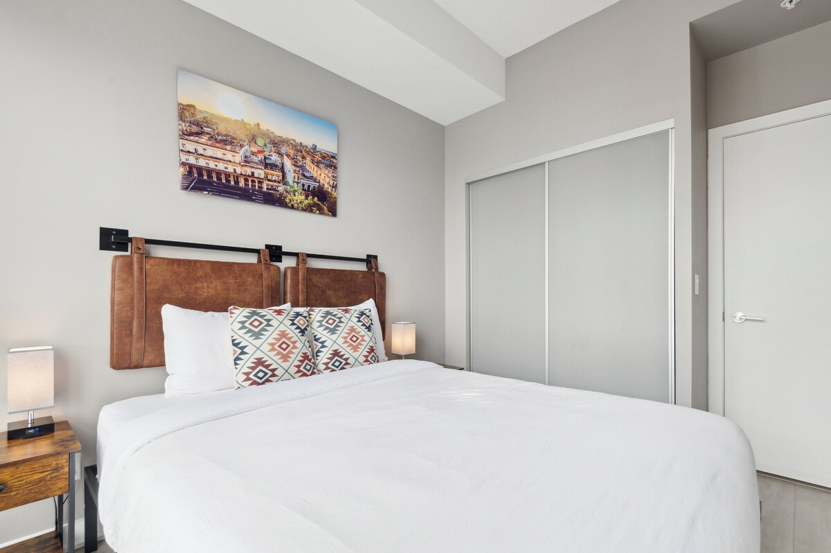 Located just steps from both St. Andrew and Osgoode subway stations, any part of downtown Toronto is accessible in minutes. For the colder months, a PATH entrance is a mere 2-minute walk away. At this property, we offer various spaces, each meticulously crafted to provide you with a stunning accommodation experience. Although our style remains uniform throughout, the scenery, arrangement, and design of each space may differ. Photos show a standard suite. Suite assigned will either be the same or better. Standard 2 Bedroom Suite: • Fully Equipped Kitchen • Two full bathrooms • En-suite washer and dryer • Queen Sized Bed in each bedroom • Flat Screen TV ( Smart TV) • Air Conditioning • Cable Included • Unlimited High Speed Internet The Amenities: • state of the art fitness centre • hot tub • sun deck • indoor movie theatre • party room • games room • BBQ deck • 24 hour security with key fob access to building • modern lobby Perfect location for anyone who wants to experience the best of what Toronto has to offer. The Area: • less than 5 min walk to the grocery store • less than 2 min walk to Underground PATH • less than 10 min walk to major hospitals • less than 10 min walk to Financial District • less than 2 min walk to the subway • 15 min public transit commute to Yorkville • 30+ restaurants within a 5 min walk Pets - allowed Smoking - not allowed We have a 24/7 KeyCafe located at our office, 142 Simcoe Street. All key picks ups happen there. This avoids a stressful delayed flight and not having to worry for the person you are meeting to leave because of the delayed flight. This also avoids a concierge desk losing your keys or not releasing your keys. Simple enter a stop to this location before your main location. All of our suites are never more than a 5 min drive to where you are staying. The street where our office is located is not busy and the office is a ground level storefront. This means that you can easily pull over in front of it, grab your keys and be on your way! We serve hundreds of corporate clients who really love the convenience and security of our KeyCafe. You also have access to our team in case you have trouble getting your keys. As a professional business, we have supports in place to make your stay feel supported and trouble-free. When you confirm your booking, we will give you the phone number and email address to connect directly with our helpdesk. With staff available for questions 7 days a week 9am to 2am, you will feel supported during your stay. We have a 24/7 KeyCafe located at our office, 142 Simcoe Street. All key picks ups happen there. This avoids a stressful delayed flight and not having to worry for the person you are meeting to leave because of the delayed flight. This also avoids a concierge desk losing your keys or not releasing your keys. Simple enter a stop to this location before your main location. All of our suites are never more than a 5 min drive to where you are staying. The street where our office is located is not busy and the office is a ground level storefront. This means that you can easily pull over in front of it, grab your keys and be on your way! We serve hundreds of corporate clients who really love the convenience and security of our KeyCafe. You also have access to our team in case you have trouble getting your keys. As a professional business, we have supports in place to make your stay feel supported and trouble-free. When you confirm your booking, we will give you the phone number and email address to connect directly with our helpdesk. With staff available for questions 7 days a week 9am to 2am, you will feel supported during your stay. Our prices include all fees. No hidden fees.