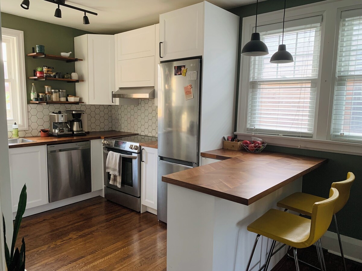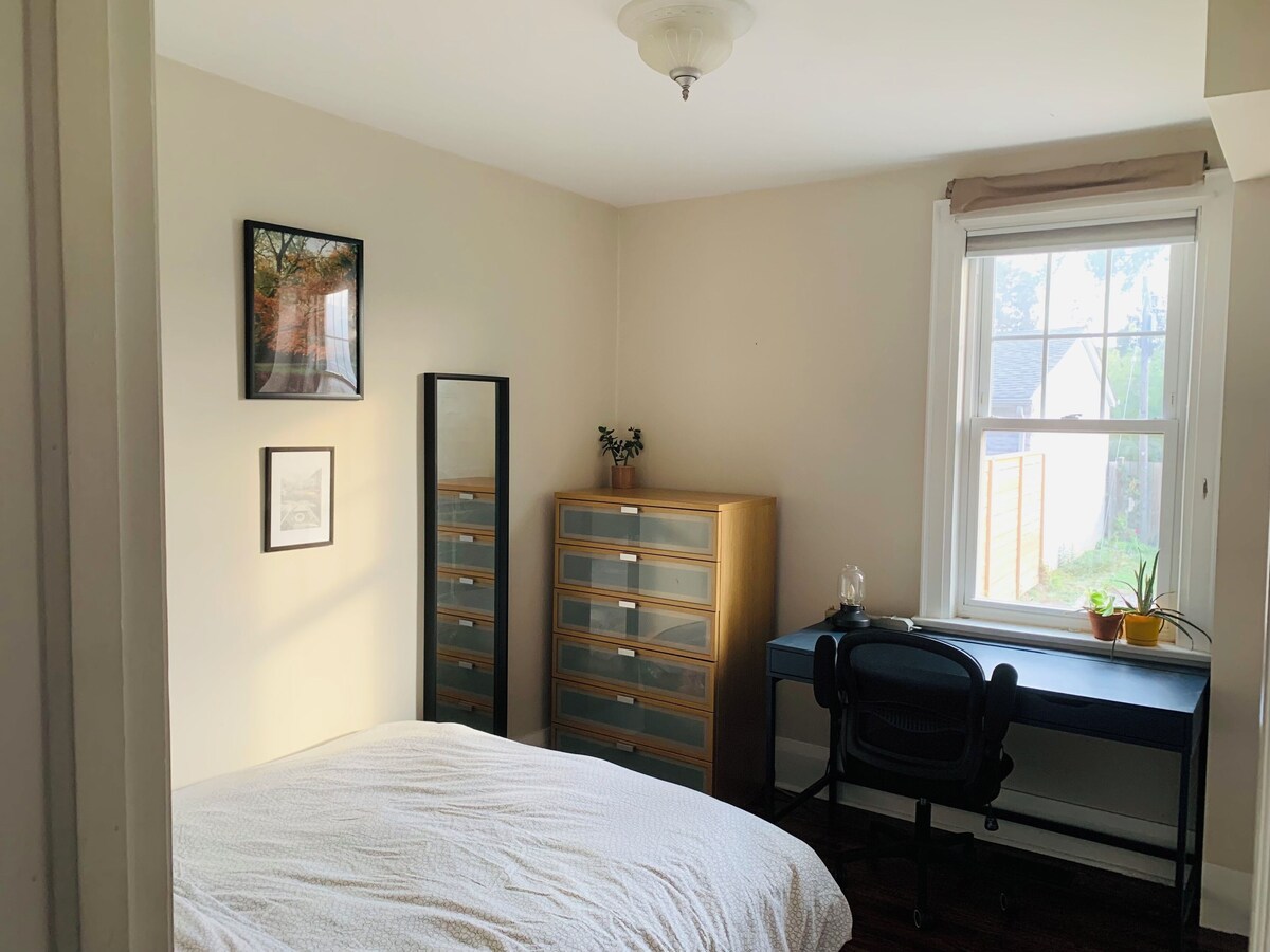 Bright and cozy 2 bedroom fully detatched house located in a safe and quiet neighbourhood. With a fully stocked kitchen, comfy living room, and dedicated workspace in the second bedroom, this will feel like home! Lots of books and vinyl records. There is a small backyard space and laundry onsite. Our prices include all fees. No hidden fees.