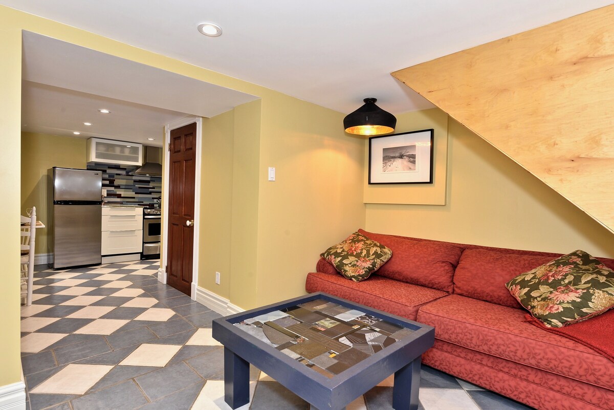 Quiet 1 bedroom pet friendly basement apartment in beautiful home in upscale neighbourhood of Leaside, Toronto. Immaculately kept, fully equipped kitchen, floor heat, high ceiling, AC and laundry room. Free parking, free Wi-Fi. Walking distance to necessities, Sunnybrook Hospital nearby. Bus stop 20 minutes to downtown. Our prices include all fees. No hidden fees.
