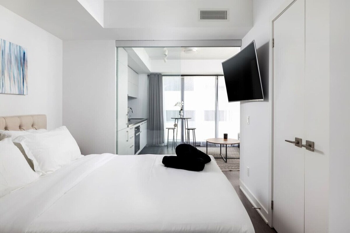 About this space Welcome to 1-Bedroom Condo nestled in the heart of Yorkville, offering an unrivaled blend of convenience and comfort. Delight in refined dining, surrounded by a tapestry of restaurants, and explore renowned shopping centers. Experience the epitome of lavish living in a prime location, where every detail is meticulously curated to ensure your stay is exceptional. This property is more than just accommodation; it's an invitation to savor the best Yorkville offers. The space Indulge in the modern amenities and comforts this property has to offer. We're into a welcoming bedroom adorned with comfortable beds, ensuring restful nights of rejuvenation. Experience the thoughtful provisions of coffee, fresh towels, and essential bathroom amenities, attending to your every comfort during your stay. Enjoy the added convenience of included utilities, a gesture that extends even to longer stays, ensuring your experience is seamless and worry-free. Stay connected effortlessly with high-speed WIFI, ensuring seamless communication and connectivity throughout your stay. The inviting living room beckons with a plush couch, providing the perfect spot to unwind after a day of exploration. A Smart TV takes center stage for your entertainment needs, granting you access to your favorite streaming platforms like Netflix and YouTube. Whether you're in the mood for a movie night or catching up on your favorite shows, the Smart TV delivers. The fully equipped kitchen stands ready to cater to your culinary desires, whether you're preparing a quick snack or a gourmet feast. It's a culinary haven where convenience meets functionality. Thanks to the modern and comprehensive gym facilities, you can maintain your active lifestyle while away from home. Stay on top of your fitness routine with state-of-the-art equipment, ensuring you don't miss a beat. Guest access You'll have the privilege of utilizing the building's state-of-the-art gym facilities, ensuring your stay is enriched with comfort, convenience, and well-being. Our prices include all fees. No hidden fees.
