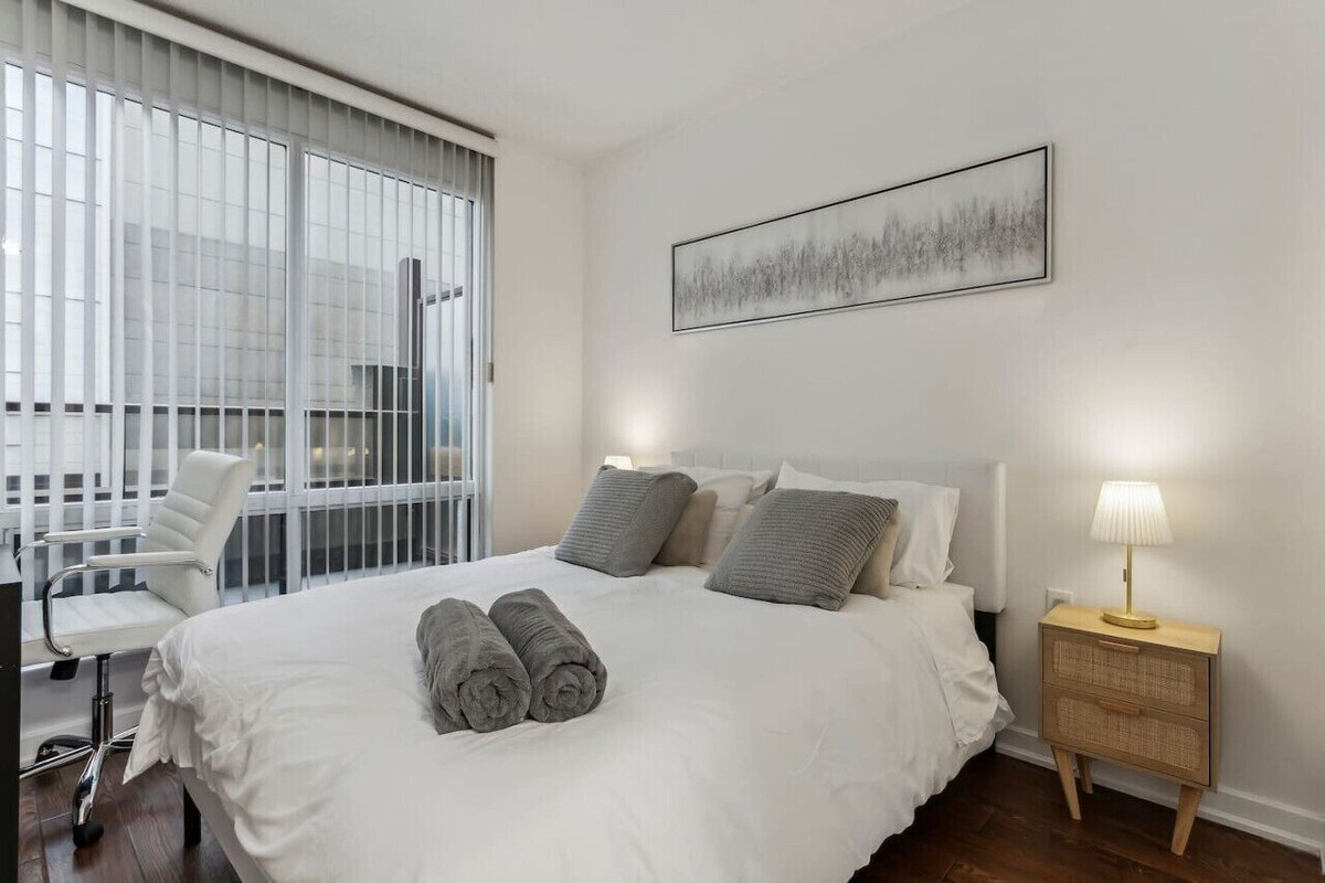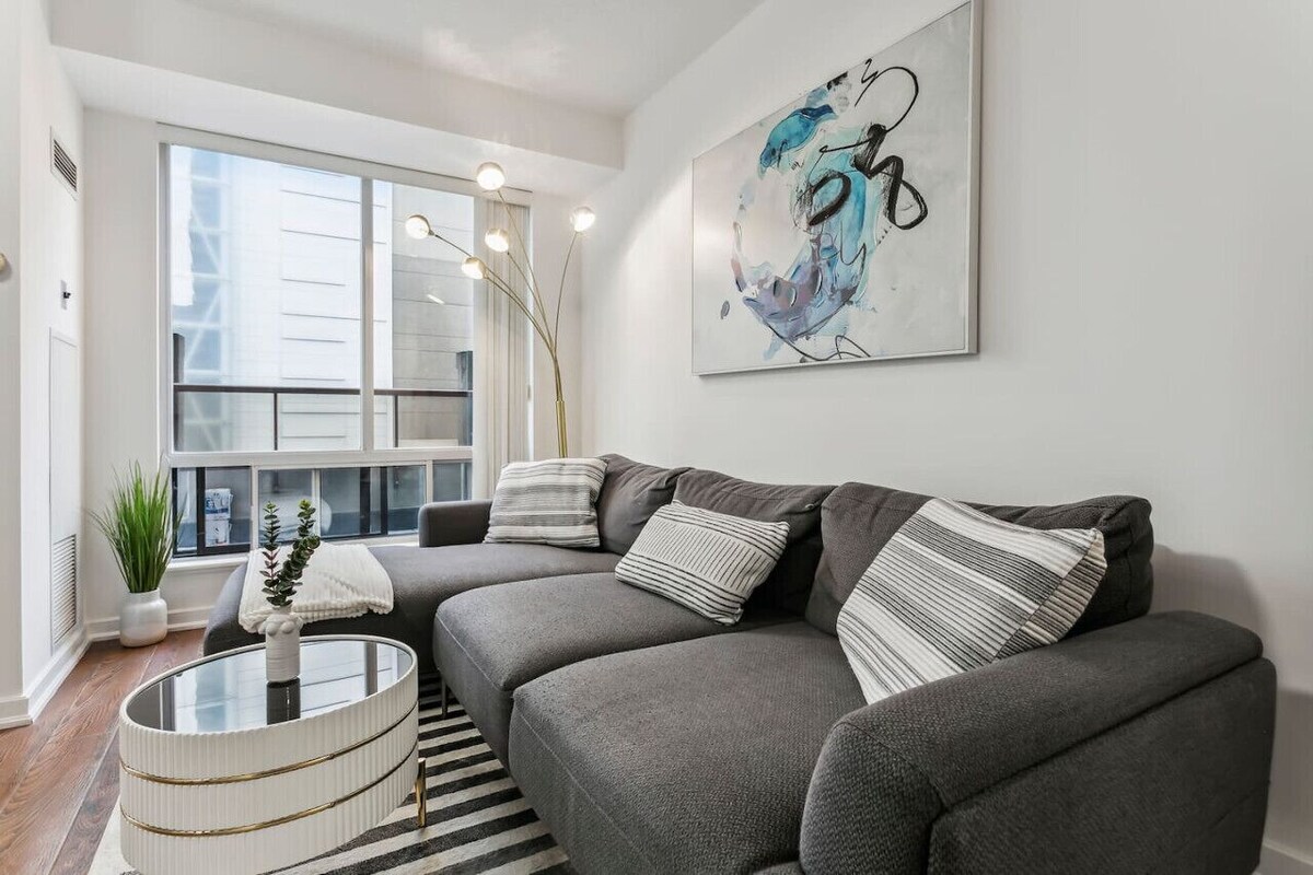 Luxurious 2 bedroom 2 baths with 2 queen beds in each bedroom, & one full size sofa in living room. Prime Toronto location, 2 minutes walk to Bloor-Yonge station, 5 minutes walk to ROM & UofT. This cozy condo unit will make yourself feel at home. Either for business trip or visiting the kids at University of Toronto, Ryerson, or simply a family holiday, your will find the unit perfectly suitable for your needs. Once you are ready to relax, retreat to the comfy home. ✔ Fully Equipped Kitchen ✔ Comfortable Bedrooms ✔ Open Concept Living Area ✔ Office Desk ✔ High-Speed Wi-Fi ✔ Free Indoor Parking Learn more below! The space The modern and comfy getaway will leave you in awe with its carefully picked amenity list. Stylish wooden floors extend throughout the entire unit. The living area combines the living and the dining room with the kitchen, creating a contemporary open concept design space. ★ LIVING ROOM ★ It is nestled in the front of the unit when you walk in. It is ideal for relaxing and enjoying the company of friends and family while watching a good movie or a show. ✔ 1 Comfortable Couches with Pillows ✔ Retractable couch to make it a comfy bed ✔ Flat-Screen TV ✔ Coffee Table ✔ Bar to sit and enjoy a meal ✔ Fire place to enjoy ★ KITCHEN & DINING ★ The kitchen area with numerous cooking appliances and spacious countertops. ✔ Microwave ✔ Stove ✔ Oven ✔ Refrigerator/Freezer ✔ Dishwasher ✔ Toaster ✔ Sink - Hot & Cold Water ✔ Trays ✔ Glasses ✔ Silverware ✔ Pots & Pans A cozy bar able is between the kitchen and the living space. It is perfect for those who want to enjoy a delicious meal relaxing in front of the fireplace. ✔ Dining bar with 3 Chairs ★ BEDROOMS ★ The bedroom's features a comfortable bed designed to provide you with the perfect resting experience. Besides the hotel-like comfort, the bedroom is furnished to meet all your business needs. ✔ Queen Beds with Pillows, Linens, and Sheets ✔ Wardrobe with Hangers and Shelves ✔ Office Desk with a Chair in Master Room ★ BATHROOM ★ The apartment features a spacious full bathroom stocked with all necessities and essential toiletries, so you wont need to bring your own. ✔ Bath with a Shower ✔ Wash Basin ✔ Mirror ✔ Toilet ✔ Towels ✔ Essential Toiletries Guest access The unit is exclusively yours, without interruption for the duration of your stay, so relax, unwind, and make yourself at home. Other than the already mentioned amenities, our home is also equipped with: ✔ High-Speed Wi-Fi ✔ Heating ✔ Air Condition ✔ Washer/Dryer (at the entrance) * There is no need to worry about parking. There is an indoor parking spot for the property. Only contact us during your stay for any of your needs/questions as the security is not part of Airbnb. They will not/can not help you. Other things to note The health, the safety and well-being of our guests are of utmost importance to us. For this reason, we use a thorough and extensive process of cleaning after each check-out. There is also a 500$ fee for smoking in the unit and throwing any unauthorized party’s. no smoking no parties $500 fee associated with broken rules. Our prices include all fees. No hidden fees.