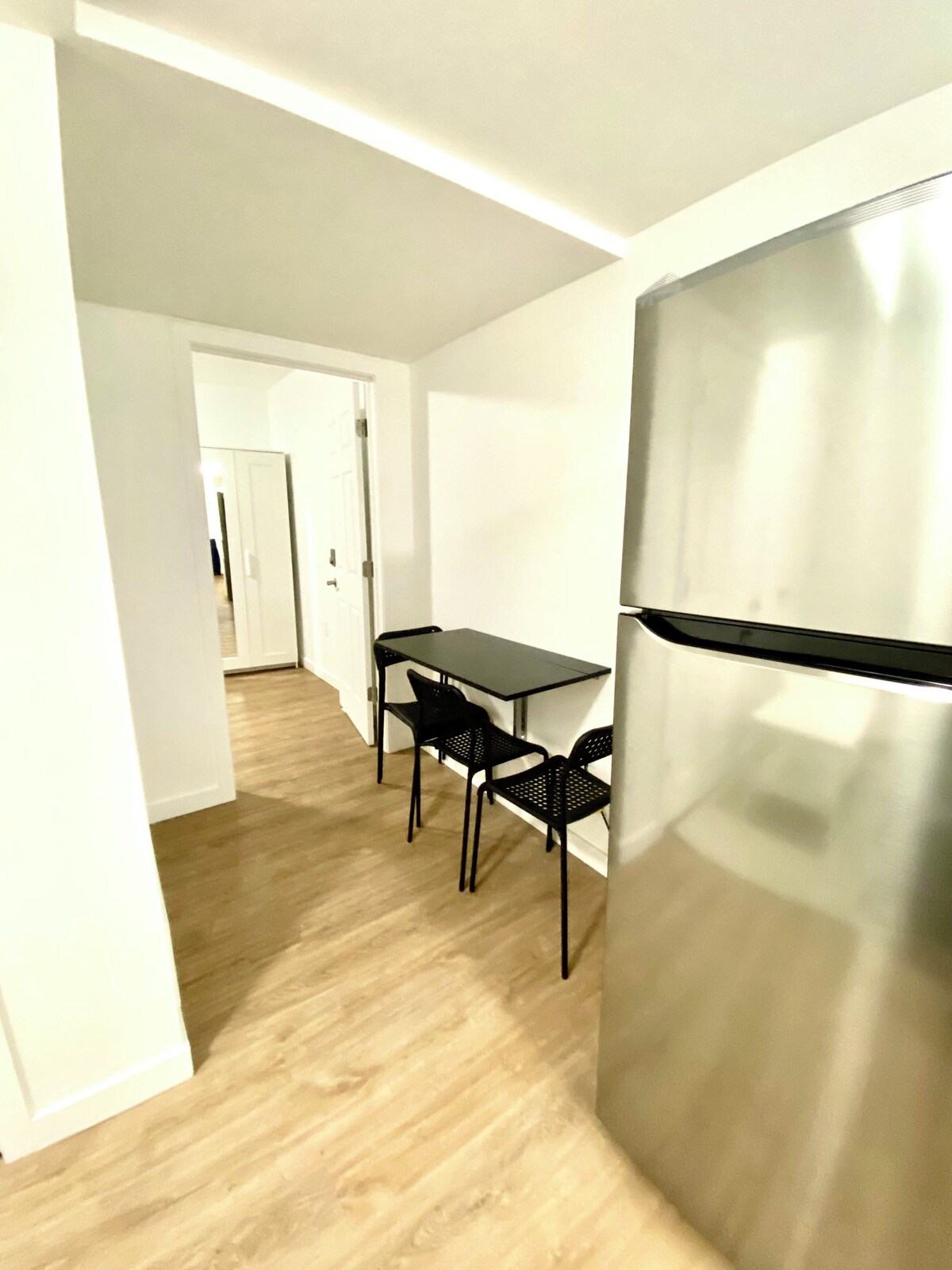 This newly renovated two-bedroom apartment, along with a living space that can be converted into a den, is located on the second floor and fills with natural sunlight. It is conveniently situated next to the Dundas West subway station and directly opposite the Bloor GO and UP station. The apartment can comfortably accommodate up to five guests and is within walking distance of High Park and the Beach. Shopping amenities, including FreshCo, are nearby. With a prime location, the pricing covers all utilities, furnishings, Wi-Fi, and laundry. Our prices include all fees. No hidden fees.