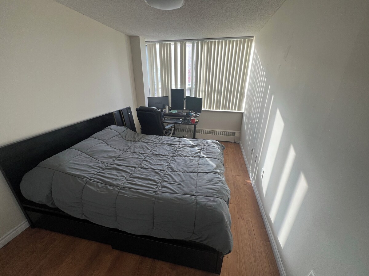 elcome to your cozy home base in the heart of downtown Toronto! This private room is perfect for remote workers, students, or city explorers. You'll enjoy a comfortable queen bed, standing desk with three monitors, and fast Wi-Fi — all in a clean, quiet, and safe space. Walk to Toronto’s best spots: TMU (5 min), Eaton Centre (8 min), major hospitals (8–10 min), and the Financial District (12 min). TTC transit is just steps away. Our prices include all fees. No hidden fees.