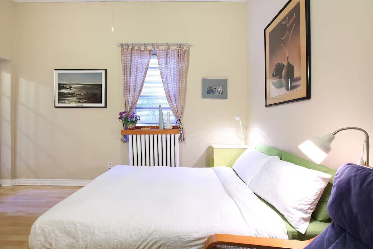 Our cozy studio is a private apartment perfect for those who want to experience the best of what The Junction has to offer but also have a quiet, peaceful, private and safe space to relax afterwards! The studio is a clean and quiet space, located at the back of our building ground floor and is equipped with everything you need for a perfect stay. The outside space is also lovely and in the spring/summer the patio set will be set up for you to enjoy at your leisure :) Please note the entrance is private and accessed from a safe laneway 30m from Dundas Street West. The studio is equipped with a double bed, private washroom and a kitchenette with a stove top, microwave, toaster oven, pots, pans, cutlery, dishes, kettle and coffee maker. The studio also features a TV with over 100+ channels, WiFi, ceiling fan, high ceilings, fresh towels and linens, as well as an iron and ironing board. Just bring your personal items (ex. tooth brush, hair dryer, shampoo) and you are all set! There is no washer and dryer, but there is a laundromat just down the street. Our prices include all fees. No hidden fees.