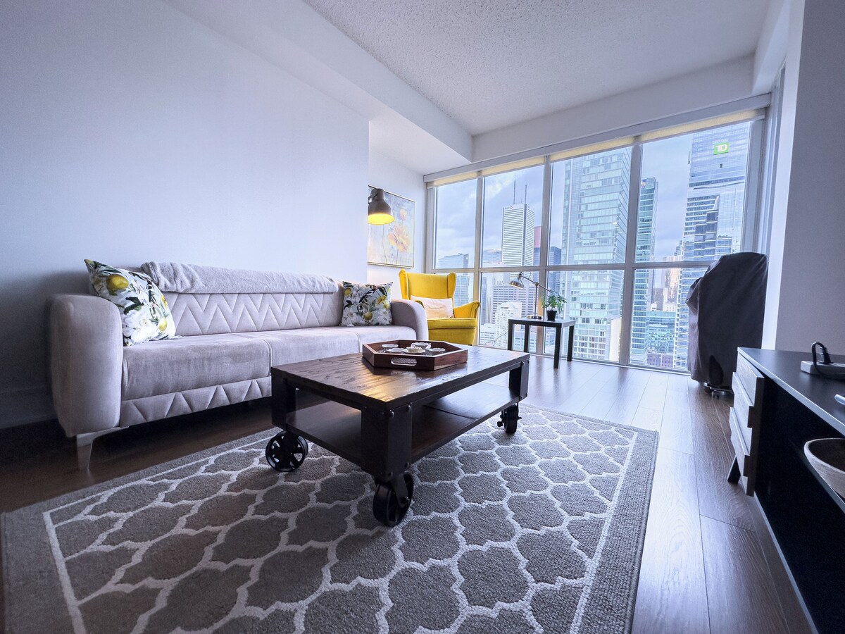 Our Hotel Suites are located in the Entertainment district of Downtown Toronto, we offers spacious, pet-friendly apartments with two bedrooms, 2 washrooms and a living room with a queen sofa bed and play pen for kids. Each unit features a terrace, balcony, or outdoor dining area, providing ample space for relaxation. Modern Amenities: Guests enjoy free Wi-Fi, air-conditioning, and a fully equipped kitchenette. Additional building amenities include an indoor whirlpool hot tub, heated rooftop pool, an equipped fitness centre, cabana lounges, in-suite washing machine and dryer, and streaming services. The property is equipped with parquet floors and a dining area, ensuring comfort and convenience. Prime Location: Located in the city center, the apartment is 1.2 mi from Billy Bishop Toronto City Airport. Nearby attractions include Ripley's Aquarium (2-minute walk), Rogers Center (2297 feet), Convention Centre ( 30 seconds walk) and CN Tower (less than 1-min walk). An ice-skating rink, boating, kayaking, and canoeing are available in the surroundings. Our prices include all fees. No hidden fees.