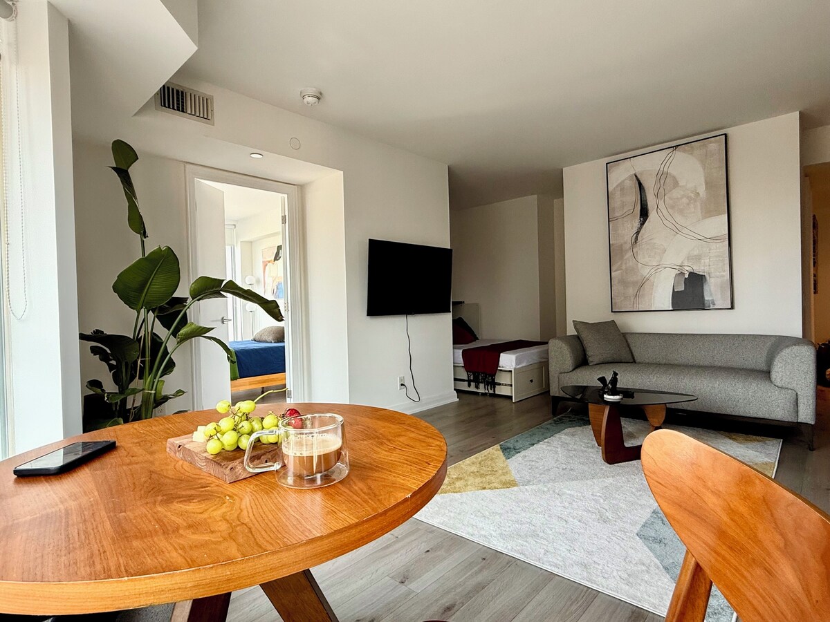 Beautiful Home in the Heart of Yorkville. We invite you to enjoy your stay in our 1 bedroom Queen size + Den 1 full/double bed condo apartment in Yorkville, one of Toronto’s most iconic — and stylish — neighbourhoods, blending historic charm with upscale urban living. Boundaries: Bounded by Davenport Rd (N), Bloor St (S), Yonge St (E), and Avenue Rd (W) Walkable luxury: Compact, pedestrian-friendly vibe—everything from galleries and boutiques to cafés is within a 5‑minute stroll Cultural venues: Home to ROM, Gardiner Museum, Bata Shoe Museum, art galleries, and TIFF events Urban parks: Small green spaces—Village of Yorkville Park, Ramsden Park, and garden parkettes—add tranquility Excellent transit: Perfect scores for walkability and transit access; two subway lines meet here (Bloor/Yonge & Bay) Amenities: a fitness room. 24/7 security. Our unit comes with a fully equipped kitchen with a dishwasher, office, flat-screen TV, washing machine & dryer, full bath tub/shower, hairdryer, microwave, and Nespresso coffee machine. We look forward to hosting you! Our prices include all fees. No hidden fees.