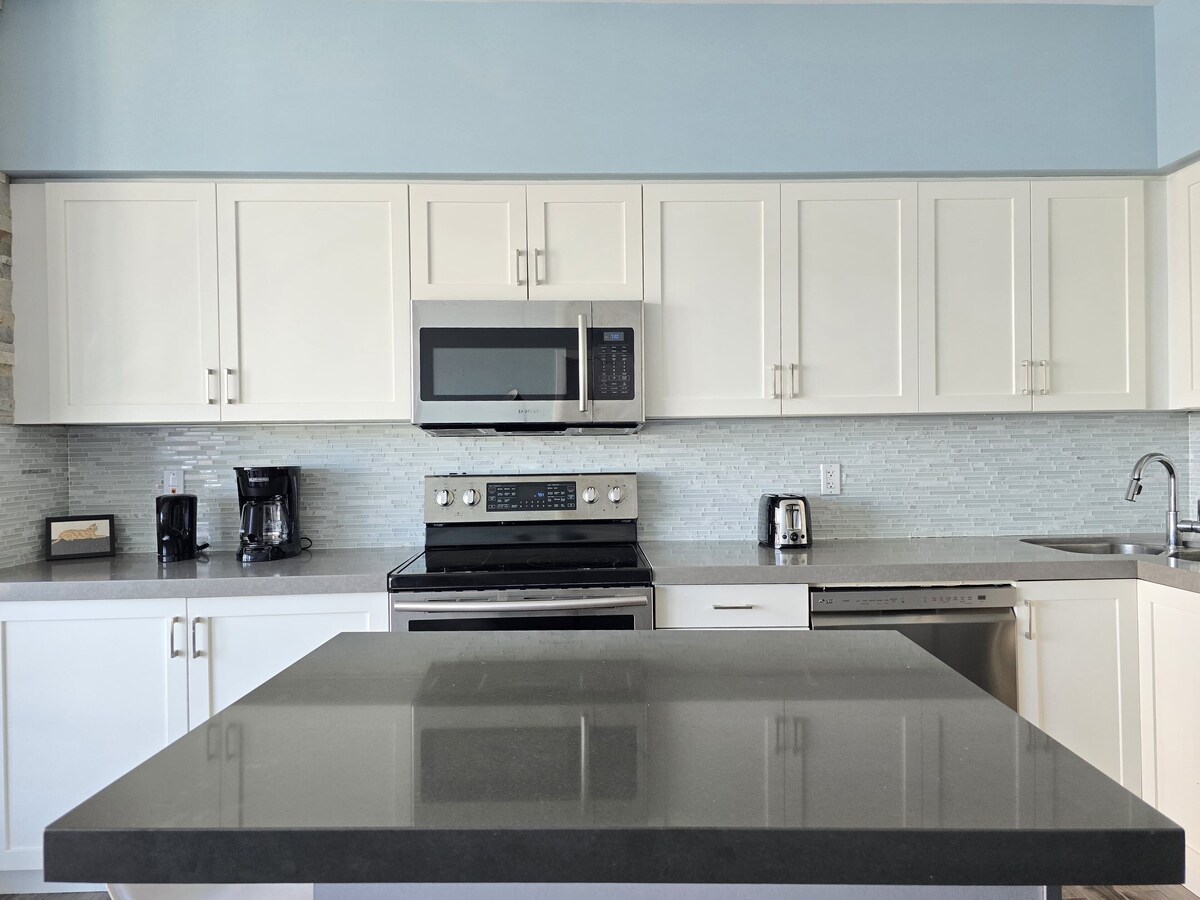 Experience the pulse of Toronto from its heart! Enjoy stunning city views through floor-to-ceiling windows, or watch planes take off from the airport. Steps from Harbourfront, Canadian National Exhibition, CN Tower, Rogers Centre, and TTC transit. Enjoy two cozily designed bedrooms, a full kitchen, in-suite laundry, and Wi-Fi. Relax at the pool and sauna after gym, or sunbathe on the patio. Enjoy complimentary sugar, salt, pepper, and coffee for your convenience. Free parking is included. Enter the hallway to tall ceilings that lead to floor-to-ceiling walls offering panoramic views of the city. Grab a seat and watch the city gleam at night - or if it's daytime, watch airplanes takeoff from the Billy Bishop Airport. Make lasting memories in the living area with a full leather couch, an industrial-styled glass coffee table, extra stools, a Smart TV loaded with Netflix, Youtube and other apps to enjoy. Or just simply lounge and enjoy the city views (as you may have noticed, this never gets old). Bedroom 1 has one Queen size bed, two frosted sliding doors that meet at the room's corner and open into the living room, fresh white bedding, and ample closet space. Naturally exposed to lower light, this room is adorned by a tri-directional floor lamp to add to the coziness you feel stepping on its carpet. Bedroom 2 has one Queen size bed, fresh white bedding, and ample amount of closet storage with a connected full tub ensuite bathroom with two sinks. With a floor-to-ceiling window providing gorgeous views of the CN Tower amidst the city skyline, wake up to sunsets and feel motivated every morning. Both washrooms contain 2 sinks each and are fully equipped with toiletries such as towels, soap, body wash, shampoo, and conditioner. The den houses a workstation outside of the bedrooms so you can type away without disturbing others. The den also contains a large closet. The balcony is where you can really take in the waterfront views to your right, being home to one of the the Royal Canadian Navy bases. On the left, you'll find the iconic CN Tower standing out among the rest of the buildings. Laundry made convenient with a stacked washer and dryer situated out of sight behind the first door in the foyer with detergent placed beside. You can adjust the blinds as per your preference - both in the living room as well as in bedroom 1. Bedroom 2 is already dark enough, and you can darken it further by turning off the lights in the living room. Aside from the complimentary salt, sugar, pepper and coffee, the kitchen has all the essentials you need to cook or bake. You'll find it filled with cutlery and cooking utensils. Our prices include all fees. No hidden fees.