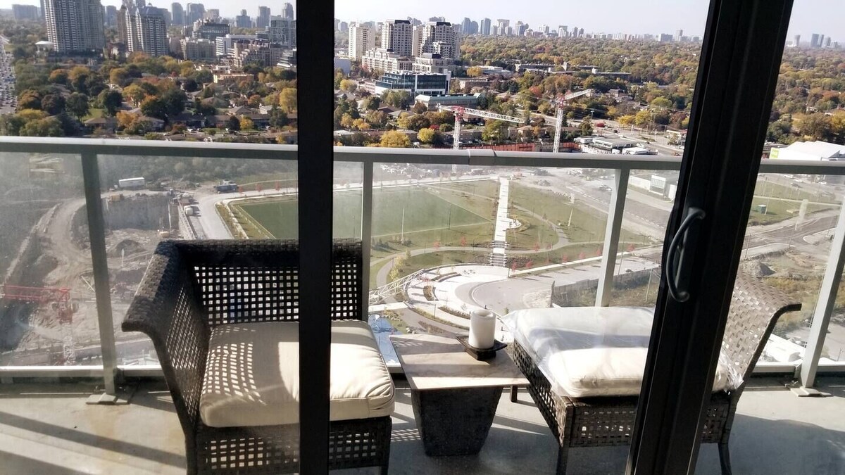 Brand new, bright, spacious Fully Furnished 1 Bedroom plus Dan Condo with indoor Parking located in luxury Beyview Village. Enjoy unobstructed views of the downtown skyline from the balcony and unmatched views of the sunset. Walking distance with 2 subway stations & Every 15 minutes there is a shuttle to Sheppard Subway. Grocery store, North York General Hospital, Canadian Tire, IKEA, Bayview Village Shops, LCBO, within walking distance. 24hr Security | Concierge | Visitor Parking The space Fully Equipped Kitchen - Pots | Plates | Coffee Maker | Dishwasher | etc. 55 OLED TV |Rogers Cable Tv | All Movie Channels | giga bit Wireless hi speed Internet | Dining Table | Washer & Dryer in Suite | Fresh Linens | Towels | Blow Dryer | Iron Guest access All Parts Other things to note I have special discount for long term stays. Send me your request and I'll answer you asap. Our prices include all fees. No hidden fees.