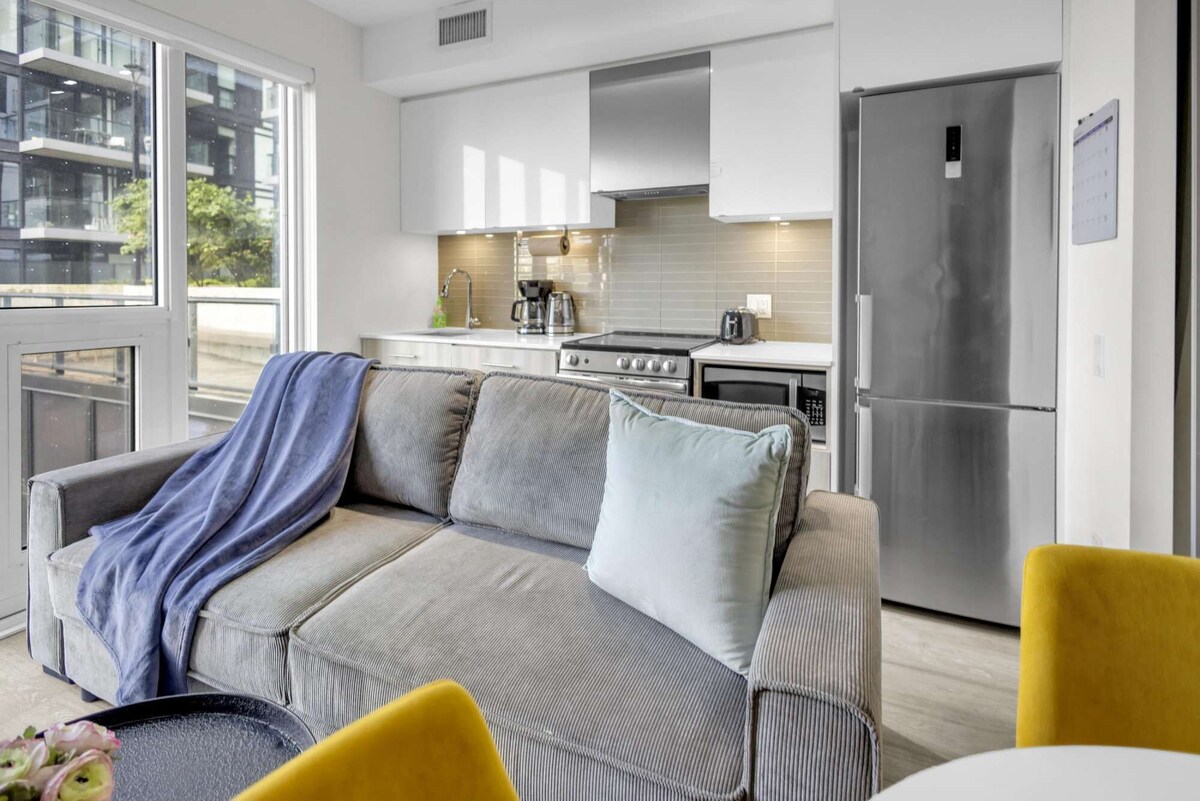 Welcome to RivetStays - The Jarvis, your exclusive suite haven at 251 Jarvis St, just moments from Dundas Square! Unwind in our charming 1-bedroom apartment, complete with a plush double bed for the ultimate Toronto retreat. This meticulously designed space boasts a cozy bedroom, a fully equipped kitchen for culinary adventures, and a stylish living area to kick back and relax. With prime proximity to public transportation and must-see attractions like Eaton Center, Dundas Square, TTC, and Yonge St, you'll be in the heart of the action. Plus, enjoy lightning-fast GIGAbit internet with 1.5GBPS download speeds and a 58\ ll provide you with detailed instructions on accessing the unit hassle-free. Plus, our check-in service is available 24/7 for your convenience. Parking heads-up: While we don ,