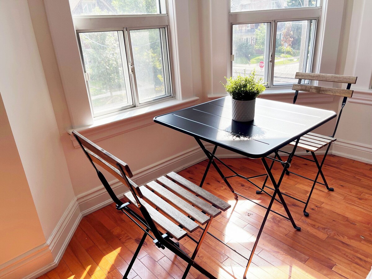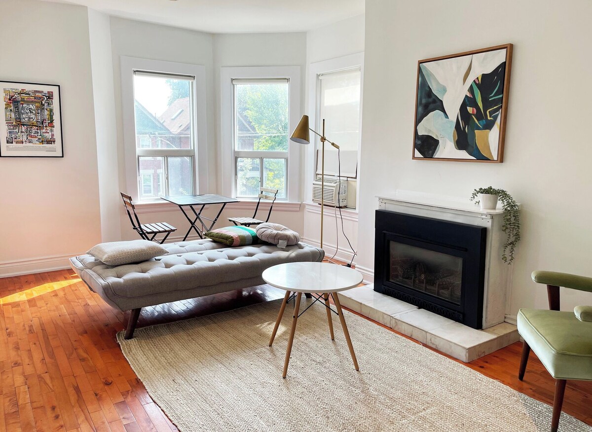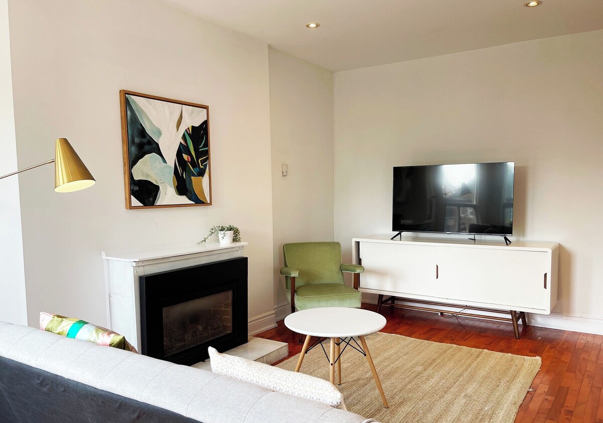 Kick back and relax in this calm, stylish space. Second floor of a stately home. Pot lights, hard wood, gas fireplace, futon/couch, 50\ ,