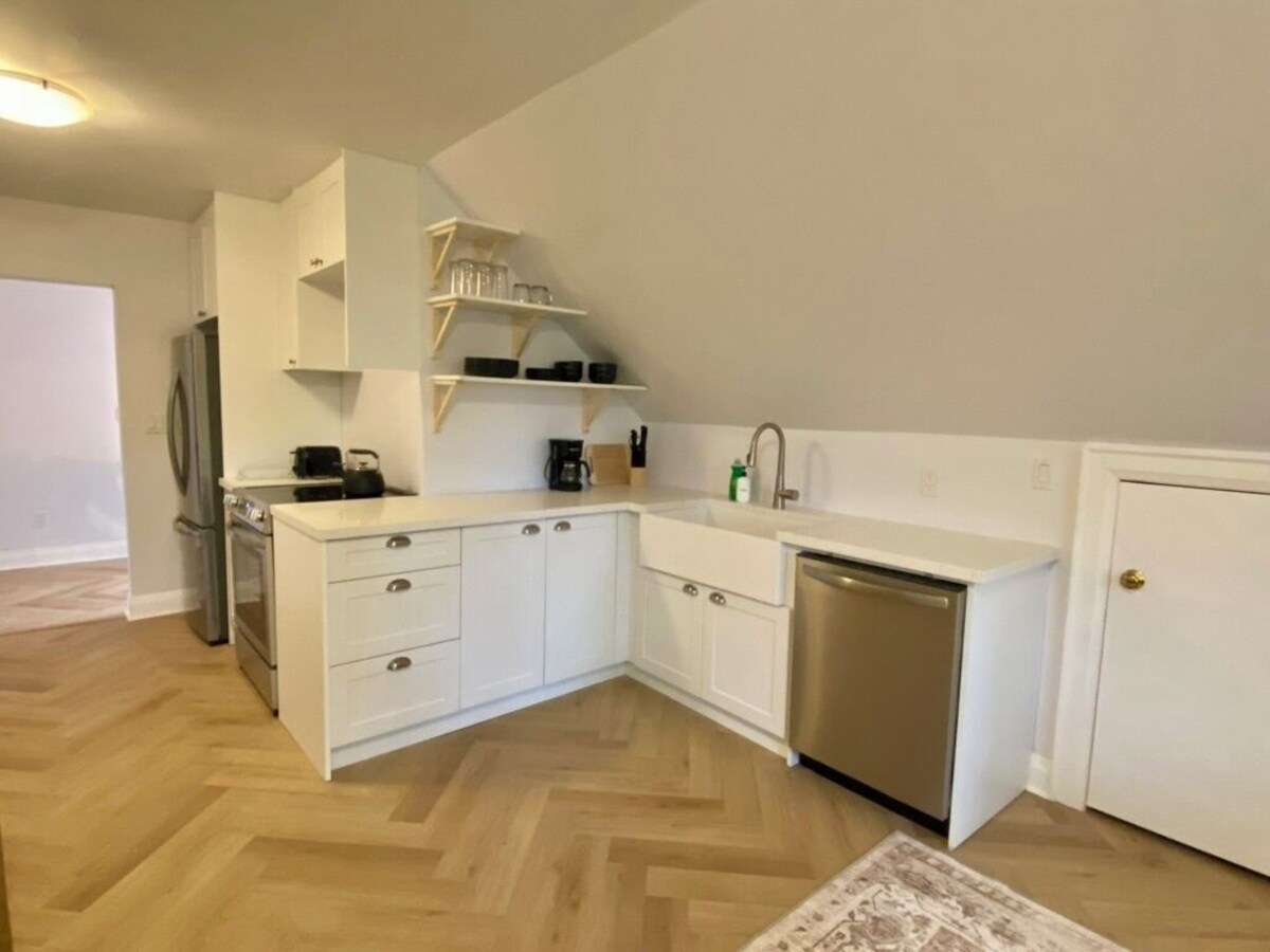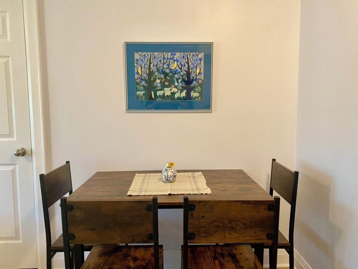 Wake up in a sunny third-floor suite nestled under the oaks, where big windows bring in natural light and leafy views. This private, open-concept apartment feels like a cozy treehouse retreat — and it’s only a 3-minute walk to the lake, public beach, and boardwalk. THE SPACE This fully furnished suite is designed for extended stays (28-day minimum) and includes everything you need to feel at home: - Comfortable king bed with fresh linens - Open-concept living area with plenty of natural light - Full kitchen with cookware, new appliances (fridge, stove, microwave), and coffee maker - Wi-Fi and smart TV/Netflix for work or relaxation - In suite laundry - A relaxing, home-like experience GUEST ACCESS You’ll have the entire private third-floor suite to yourself. Please note: stairs only — no elevator access. LOCATION HIGHLIGHTS Situated in Toronto’s vibrant east end, this suite blends city convenience with lakeside living: - Public beach & boardwalk: 3 minutes away — perfect for morning coffee strolls - Queen Street East: local cafés, restaurants, and shops within walking distance - Public transit: TTC streetcars and buses nearby for easy trips downtown - Biking & walking trails: great for outdoor activities right from your door PERFECT FOR - Long-term guests needing a furnished home base in Toronto - Relocations or extended work stays - Couples or solo travellers seeking a private retreat with both beach and city access HOUSE RULES - 28-day minimum stay - No smoking inside - Please respect neighbours and keep noise levels reasonable WHY GUESTS LOVE IT This suite offers the rare combination of bright, comfortable living space, convenient location, and quick access to Toronto’s waterfront. Whether you’re here for work or leisure, it’s the perfect blend of city and nature. Our prices include all fees. No hidden fees.