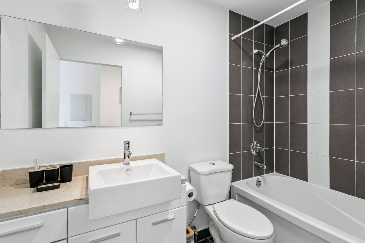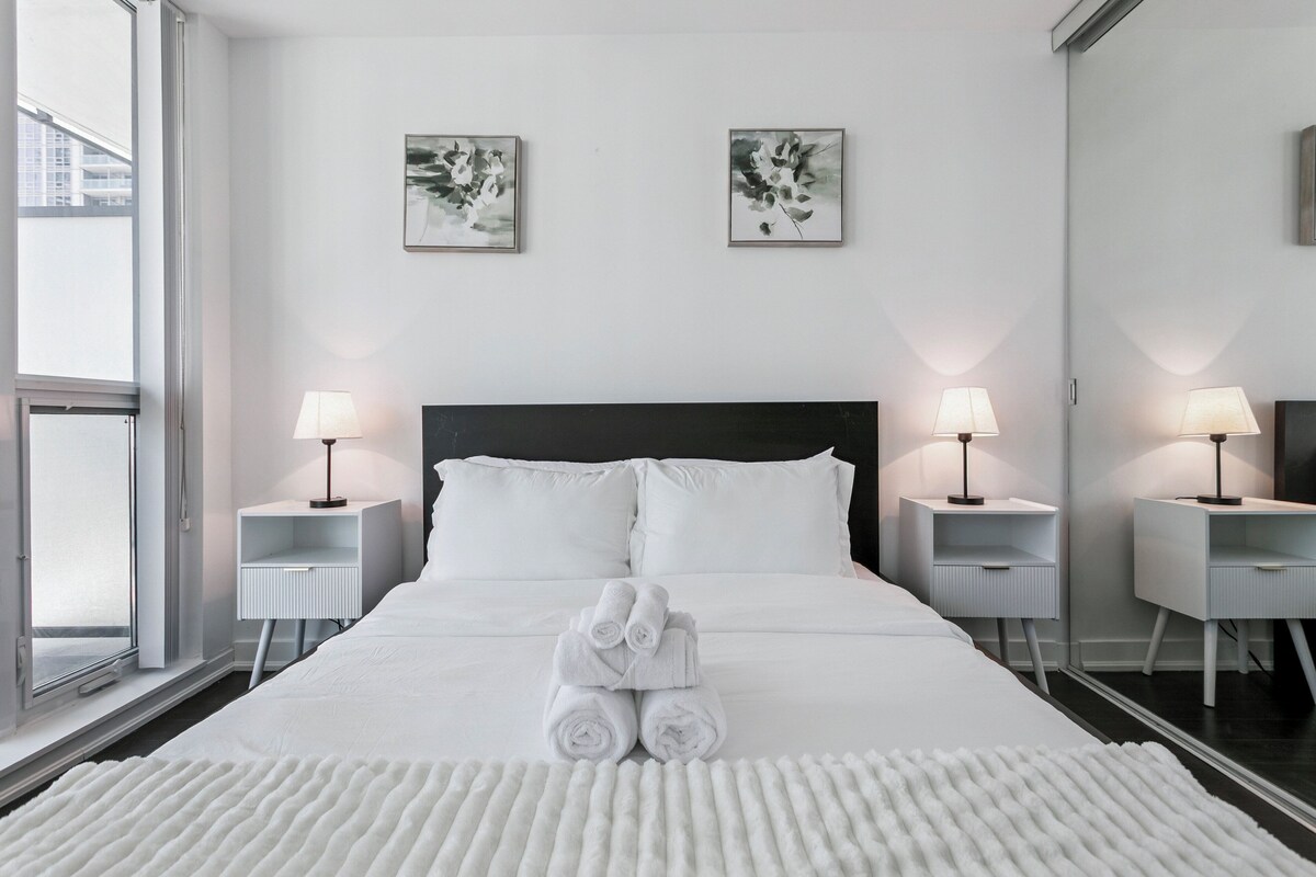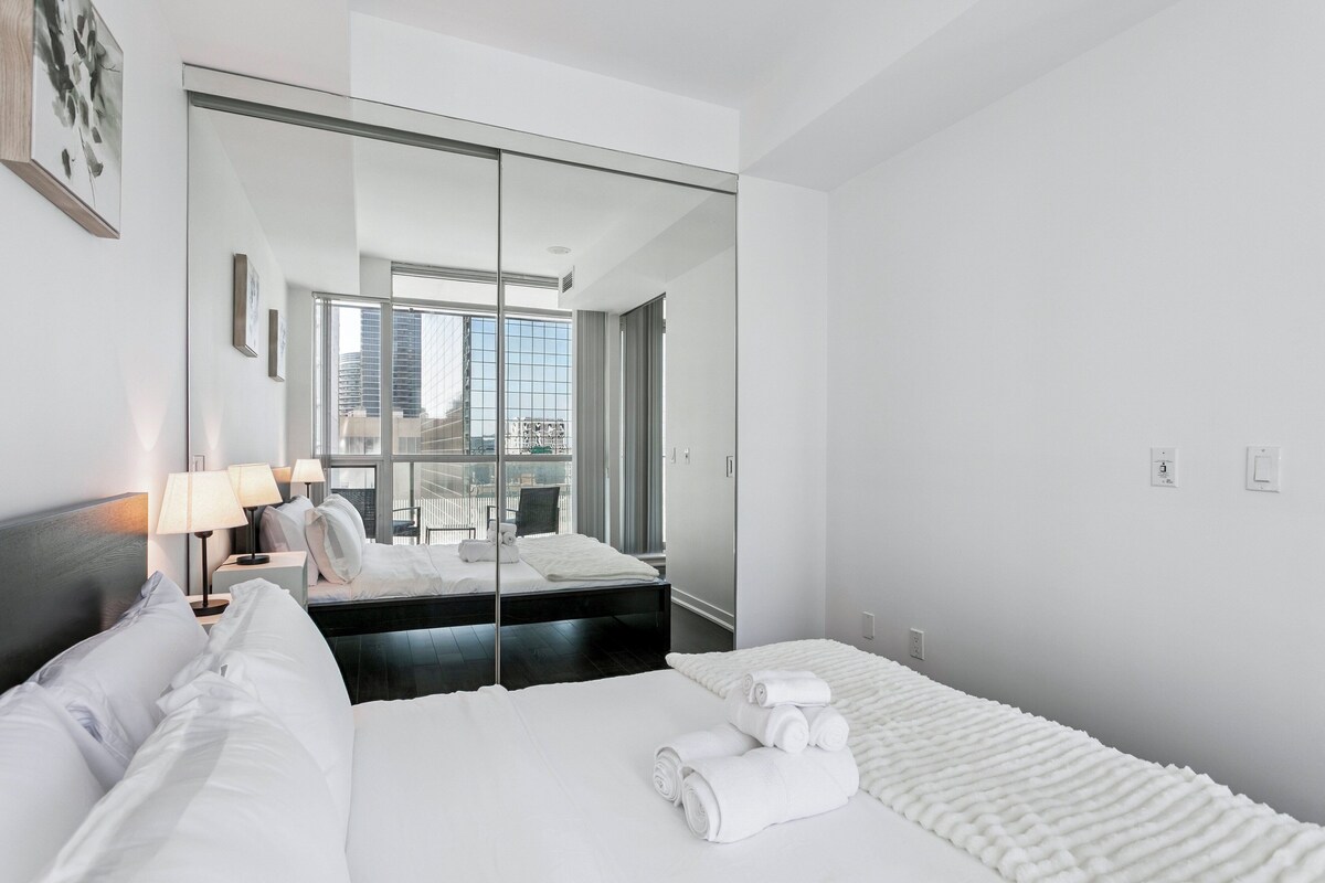 About this space Welcome to this modern and thoughtfully furnished 1-bedroom, 1-bath condo in the heart of downtown Toronto , perfect for business travelers, couples, or solo stays.Located in a prestigious building just steps from major hospitals, universities, and the Financial District, this unit offers both comfort and convenience. Enjoy a private patio, dedicated workspace, and included parking, along with access to resort-style amenities. The space About the Space Designed for both function and relaxation, this bright and well-appointed suite features an open-concept layout with a cozy living area, dining table, full kitchen, and a private patio. Whether you're working remotely or exploring the city, this unit is a perfect home base. The Property This upscale condo is ideal for short or extended stays, offering high-end furnishings, hotel-style comfort, and premium building features. ✔ 1 Bedroom, 1 Full Bathroom ✔ Dedicated Workspace ✔ Private Patio with Seating ✔ Open Living & Dining Area ✔ Fully Equipped Kitchen ✔ Queen Bed with Quality Linens ✔ In-Suite Washer & Dryer ✔ Parking Included ✔ High-Speed Wi-Fi ✔ Smart TV with Streaming LIVING & ENTERTAINMENT ✔ Comfortable Sofa & Coffee Table ✔ Smart TV with Streaming Access ✔ Floor-to-Ceiling Windows ✔ Dining Table for Four ✔ Walk-Out to Private Patio KITCHEN ✔ Full-Size Fridge & Freezer ✔ Oven, Stovetop & Microwave ✔ Dishwasher ✔ Coffee Maker, Kettle ✔ Cookware, Dishware & Utensils BEDROOM ✔ Queen Bed with Plush Mattress ✔ Fresh Linens, Extra Pillows & Duvets ✔ Storage Closet ✔ Blackout Curtains WORKSPACE ✔ Quiet Dedicated Desk Setup ✔ Ideal for Remote Work or Study ✔ High-Speed Wi-Fi BATHROOM ✔ Modern Full Bathroom ✔ Shower with Clean Tile Finishes ✔ Fresh Towels, Toiletries & Hair Dryer BUILDING AMENITIES ✔ Indoor Pool ✔ Full Fitness Centre ✔ Steam Room ✔ Movie Screening Room ✔ Outdoor Patio with Lounge Chairs ✔ Party Room & Event Space ✔ 24/7 Concierge & Security Guest access Guest Access ✔ Entire Suite ✔ Included Parking Spot ✔ All Building Amenities ✔ In-Suite Laundry ✔ High-Speed Wi-Fi ✔ Secure Entry Nearby Attractions ✔ Steps to U of T, Toronto General & Mount Sinai ✔ Surrounded by Shops, Cafés, and Restaurants ✔ Minutes to Queen’s Park, Eaton Centre & Financial District ✔ Easy Access to TTC Subway & Streetcars Other things to note Other Things to Note Professionally cleaned after every stay. Strictly no smoking or parties — $500 fine applies for violations. Our prices include all fees. No hidden fees.
