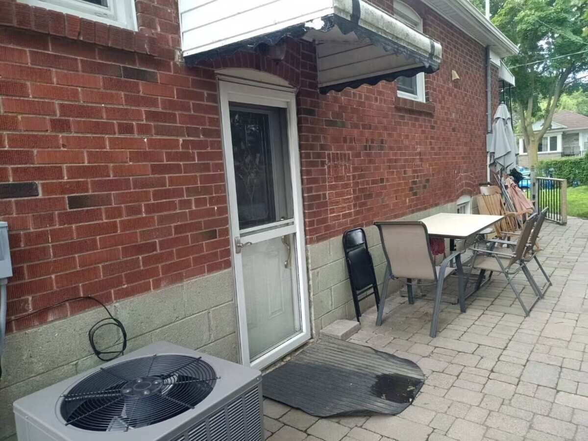 It's in Etobicoke of Toronto,It is the second unit of a house, it is basement with separate entrance! We have 2 connecting rooms with a private bathroom. It is suitable for a family of four! Takes only 12 minutes to drive to the airport.And It only takes five minutes to walk to the bus stop! The neighborhood we live in is very quiet and friendly!