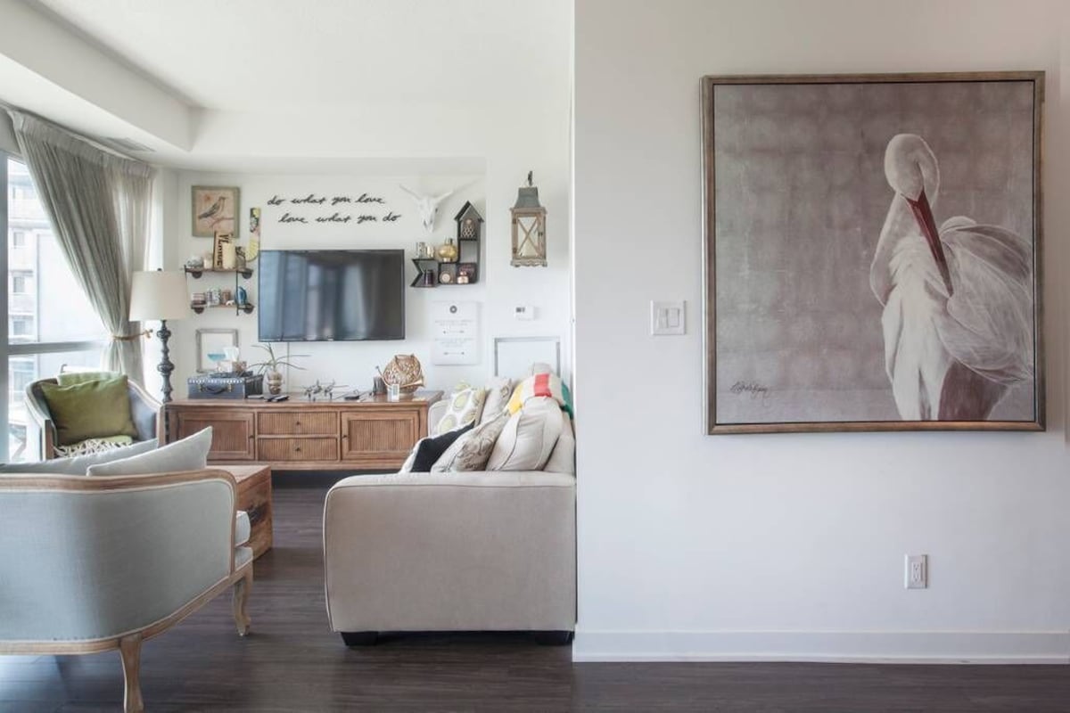 Beautiful Short term Rental, Ideal for vacationers or business Travellers. The Space includes, a Queen size bed and a Queen size pullout couch in the living room. Sleeps 4 people very comfortably. Full Kitchen with everything you need. Spacious bathroom with shower and tub. Great family style Dining area. The condo is fully furnished ready for your stay. Bright Open Concept layout, 800sq very spacious. Panoramic Views Of the lake from your own private balcony. Wake up to a beautiful sunrise right from the master bed room. Just steps away from the Nature path along the lake. Guest Access 1 Free Parking spot is included with lots of visitor parking. Also, includes a large Gym room and indoor pool, hot tub and sauna. Attractions Close to the CN Tower, Metro Convention Centre, Toronto Eaton Centre, St. Lawrence Market & the Rogers Centre are all within a 15min drive from the condo. Public Transportation Go & TTC Accessible are all within walking distance from the condo. Walk To Lake, Lake Shore Trails, Parks, Walk to the Grocery stores, Starbucks, Etc. Close to all major Highways..No pets. Our prices include all fees. No hidden fees.