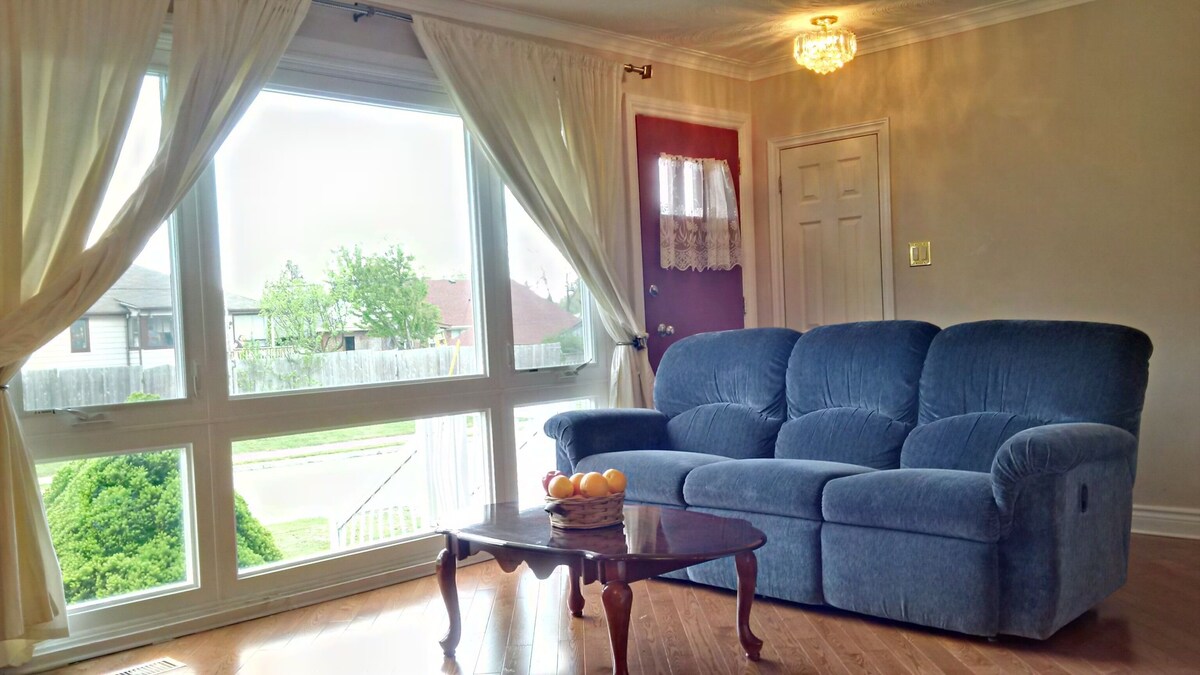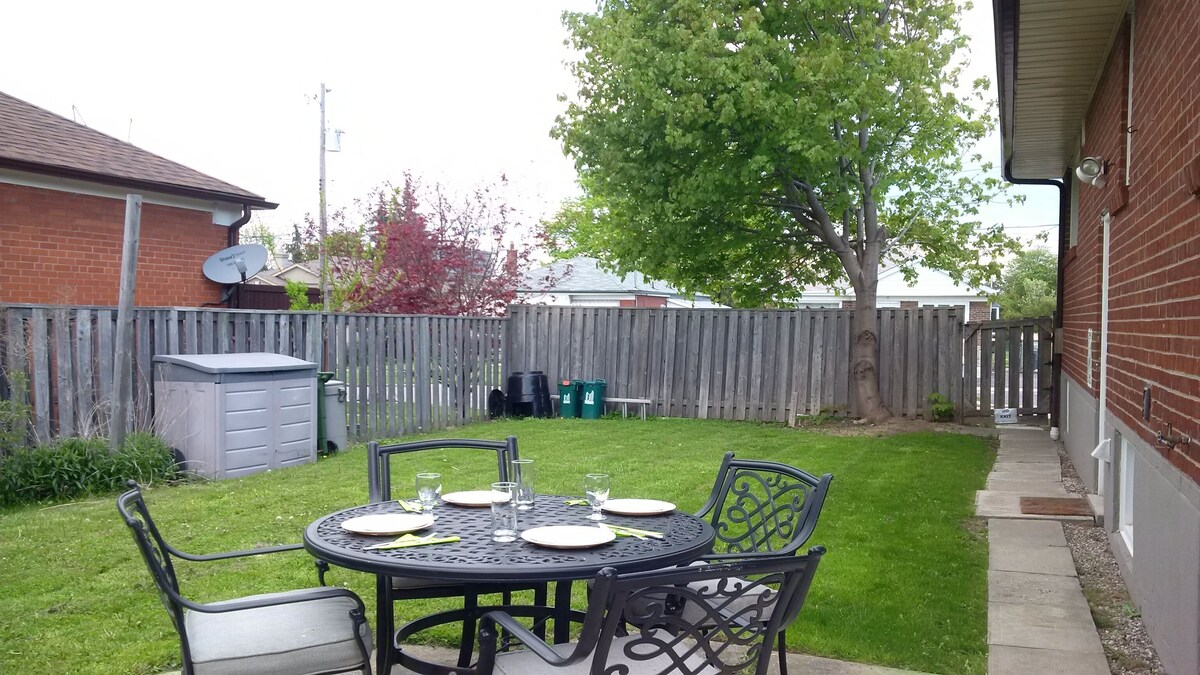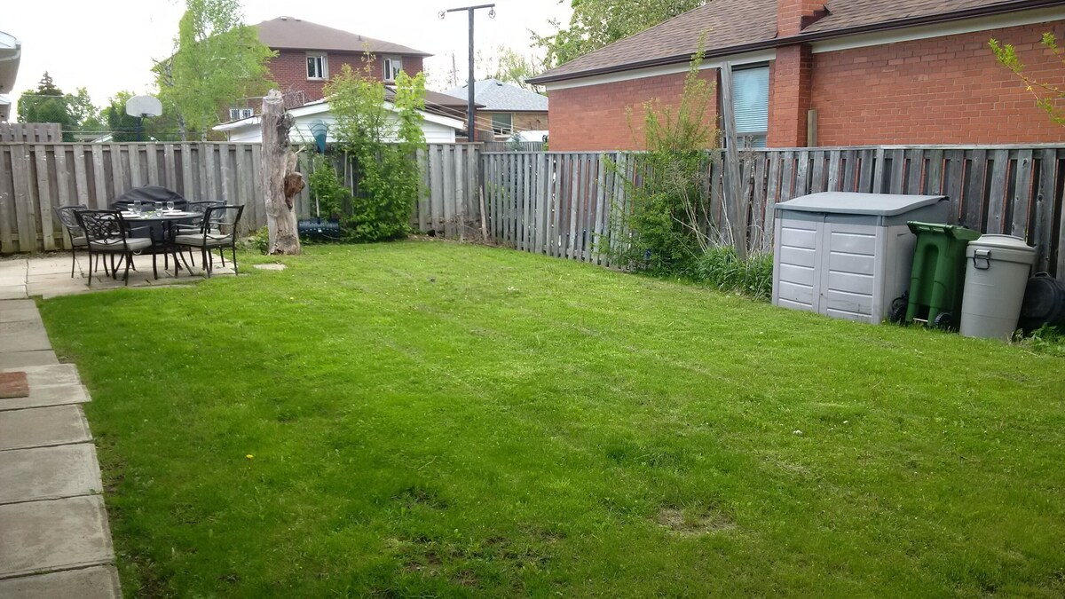 About this listing: Beautiful detached house with 6 bedrooms and 2 bathrooms can accommodate up to 13 people comfortably! Located in the safe quiet neighbourhood of Wexford in Scarborough, just 25 minutes drive to downtown Toronto. Spacious & clean home w/ private backyard and BBQ! The Space: Bright, spacious and clean - detached bungalow house - offers complete privacy and security. Large backyard with patio furniture and BBQ provides a place to relax outside. We are centrally located in Toronto with easy drives to all areas of GTA and popular destinations. Parking for 2 cars available in driveway: -- You can park additional cars on the street at night -- During the day, there's a 3 hr limit for parking (just move car to extend) Guest Access: Entire house with access to both upper and lower apartments. Upper apartment includes: - Master bedroom with queen bed - 2nd bedroom with double bed - 3rd bedroom with double bed - Living room with large 3 seat sofa - Dining table and chairs - Freshly painted main floor with newer hardwood floor - Brand new energy efficient and large windows! - Renovated full bathroom with tub and shower - Renovated kitchen with pot lights and granite countertop - Dishes, utensils, stainless steel fridge, microwave, stove, dishwasher - Washer and dryer Lower apartment includes: - Master basement bedroom with queen bed - 2nd basement bedroom with 2 twin beds - 3rd basement room - Living/dining area and den with double bed - Futon (twin size sofa bed) - Dining table and chairs - Full bathroom with tub and shower - Kitchen, dishes, utensils, fridge, microwave, stove - Washer and dryer - Essentials including bath towels, bed sheets, soap and toilet paper - Backyard with patio furniture and BBQ! - WiFi high speed internet access - HD antenna TV Interaction with Guests: We'll be available to answer your questions by text, phone or email. We'll meet you upon check in whenever possible. If we're not available, we'll provide keys in a lock-box. The Neighbourhood: We're located in the multi-cultural neighbourhood of Wexford/Maryvale in western Scarborough. Its diversity is celebrated on Lawrence Avenue, where an international array of food shops and restaurants can be found. This mix includes East and West Indian, Caribbean, African, Mediterranean, Greek and Italian businesses. Toronto LIFE magazine ranks Wexford-Maryvale 6th out of Toronto's 140 neighbourhoods as the best places to live. Getting Around: We are centrally located with easy drives to many popular Toronto and event destinations: - Steps to TTC bus station - 25 min drive to downtown Toronto - 20 min drive to Woodbine Beach or Harbourfront Centre - 15 min drive to Distillery District - 20 min drive to Canadian National Exhibition - 25 min drive to Toronto Pearson International Airport - 30 min bus ride to Eglinton subway station (Yonge-University line) Other Things to Note: I'm willing to offer a lower price if you're planning to stay long term. Please let me know. Our prices include all fees. No hidden fees.
