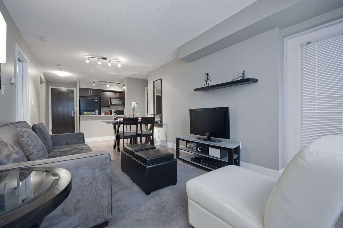 Located in the center of Toronto’s bustling entertainment district and walking distance from major transit centers with access to the remainder of the city, the Element is our Toronto short-term rental opportunity for the modern, traveler in search of a comfortable and contemporary home away from home.Conveniently located on Front Street and Blue Jays Way, Element offers 2 Bedroom and 2 Bedroom-Deluxe rentals so that you can reserve exactly the space you need for your unique preference and type of stay. Take our virtual tour and discover your beautiful temporary home today. Underground, secured, assigned garage parking is available. Parking is an additional $15CAD/night. 30-night Minimum Stay. Located in the center of Toronto’s bustling entertainment district and walking distance from major transit centers with access to the remainder of the city, the Element is our Toronto short-term rental opportunity for the modern, traveler in search of a comfortable and contemporary home away from home. Our prices include all fees. No hidden fees.