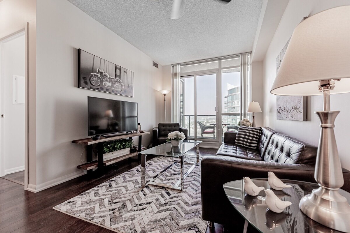 New to VRBO - check out our Airbnb listing for over 100 5 star reviews! Not Just 1 Month at a time available - we can accomodate shorter dates. Feel free to message us with your dates and we'll offer a customized price. Sink back in the hot tub or pump iron in the gym of the building, before taking the elevator to this bright modern condo. Artistically and sumptuously decorated throughout, the balcony offers wide views of both the lake and the city. Amazing downtown location that can't be beat - with transit, shopping and the lake just steps away. Includes a parking spot! Our prices include all fees. No hidden fees.