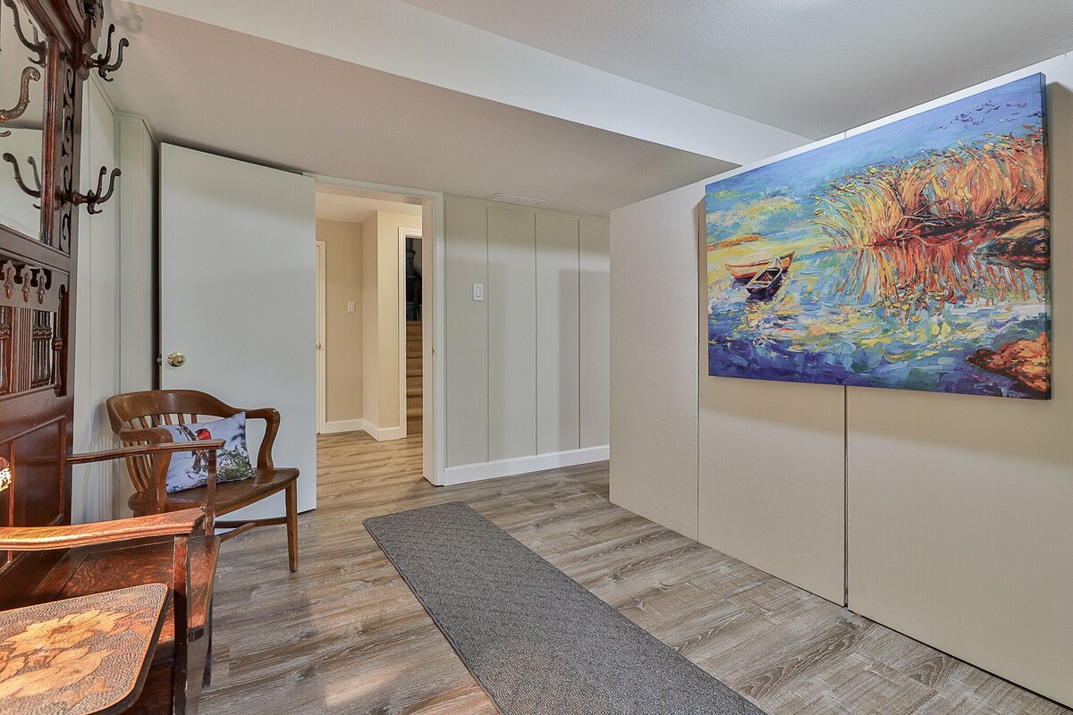 Spacious, walkout basement apt in Bayview Woods. Savour morning coffee on private patio. Enjoy the finest sleep on King Size ENDY bed, black out drapes or awaken to a glorious ravine view. Large closet/storage space. Large living/dining area with executive desk, wi fi, TV, Netflix. Beautiful 3 piece bathroom. Fully equipped kitchen with cafe table for two. Private washer, dryer, Queen size sofa bed. Parking included. Walking, biking trails with shopping and restaurants close by. Our prices include all fees. No hidden fees.