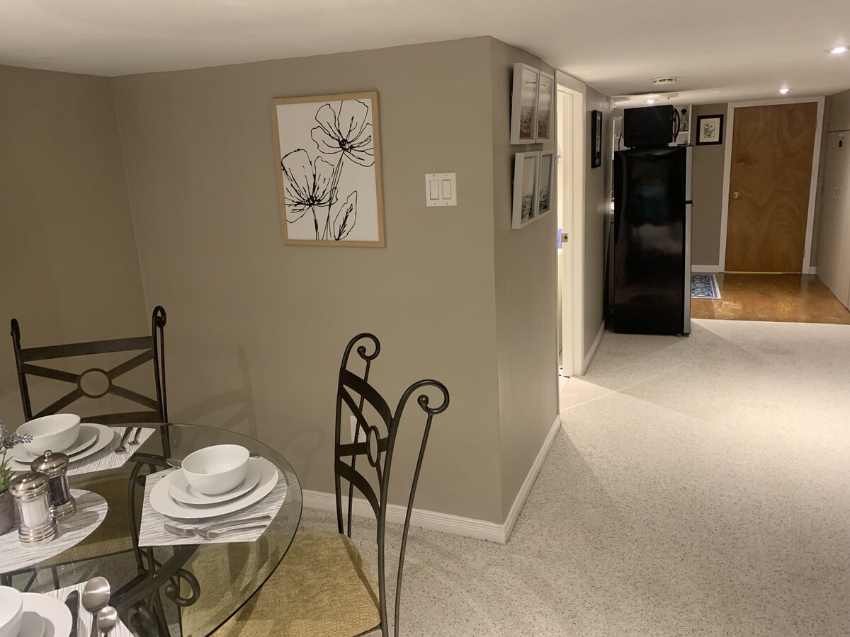 A welcoming studio apartment on a tree-lined street in a gorgeous neighbourhood is all one (or two) people need to visit or work in Toronto. Safe, spacious, spotless. Unlimited internet with a separate office area perfect for remote working. Living/dining room with 32” smart TV. Comfy bed, large couch, dining for 4. Fully-equipped kitchen. Wall-to-wall cupboards with lots of storage. Peaceful backyard with dining area amidst the beautiful perennial garden. Our prices include all fees. No hidden fees.