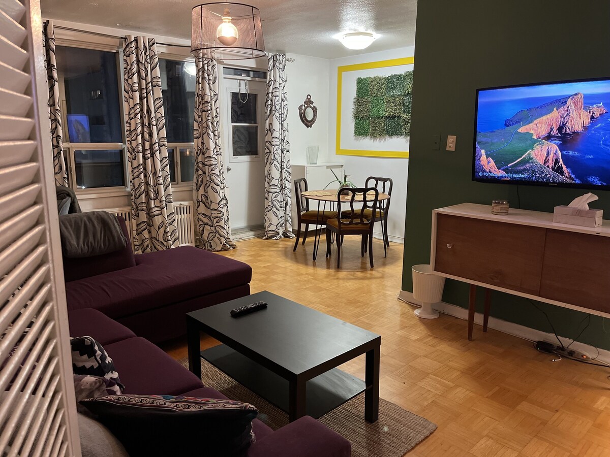Location Whether you’re in town for a day or a longer stay this unit has everything you need to be comfortable. Located minutes from downtown and within walking distance to the CNE and Queen Street bars. A short drive from the Gardiner and 2 min from a major streetcar hub, the location is simply ideal. Parks and Lakeshore are also a short distance away as are many festivals and activities. If in town for business in the core, there are options available for commute. Parking is on a first come, first served basis but there are always 2-3 spots available. The Unit The apartment is in an updated building but the unit is admittedly a bit old school but has everything you’d need for a comfortable stay. Linens, towels, cutlery, shampoo and conditioner, comfortable queen size bed, dining area and a desk area for those WFH. Bathroom was recently reglazed and tiled. The kitchen comes equipped with all dinnerware and cookware you may need. Coffee maker and air fryer for quick meals. Plenty of closet space available throughout the unit for longer stays. Amenities Netflix Amazon Prime On Site Gym Main floor laundry Our prices include all fees. No hidden fees.