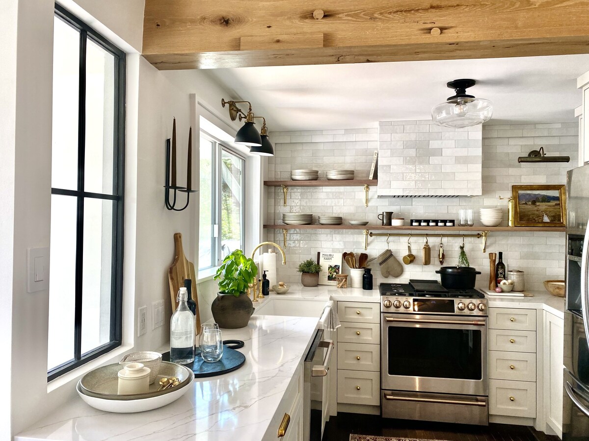 Our 1926 cottage is a secret Zen retreat! It is nestled in the hills below Topanga and surrounded by sounds of nature & lovely views. Every guest seems to find a spot to fall in love with! Retreat offers a spacious cafe style lit deck with amazing views, succulent garden, gorgeous deck off main suite w/ vast views, a calming study to read in & a tranquil meditation style loft. The newly renovated kitchen creates an amazing culinary experience. Steps away from hiking trails & minutes from PCH.