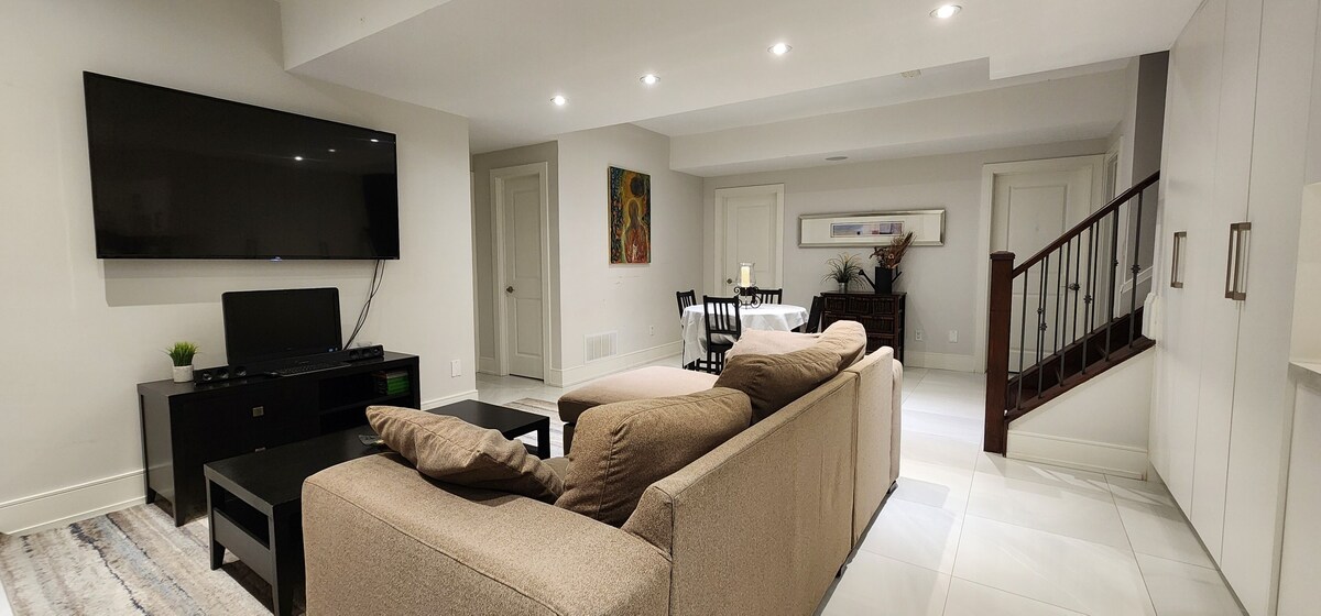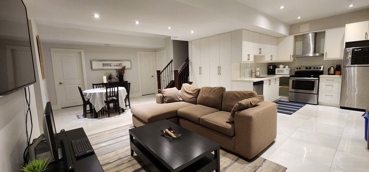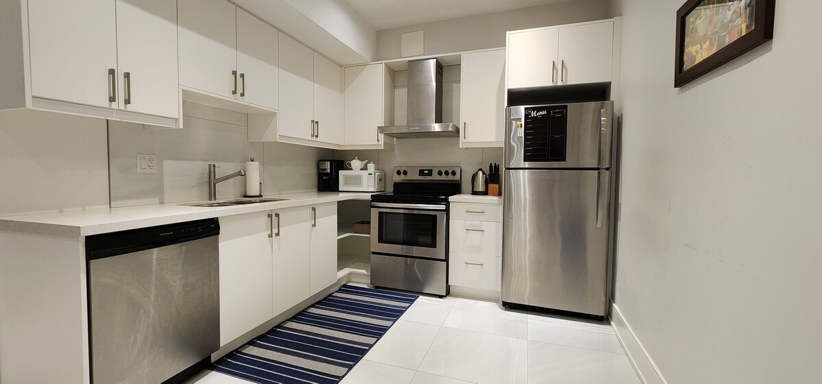 Large, bright, 3 bedroom 2 Full bathroom with Shower, basement apartment with 1 parking spot. Full Modern kitchen with stainless steel appliances, spacious living area. High ceilings, lots of closet space. Our prices include all fees. No hidden fees.