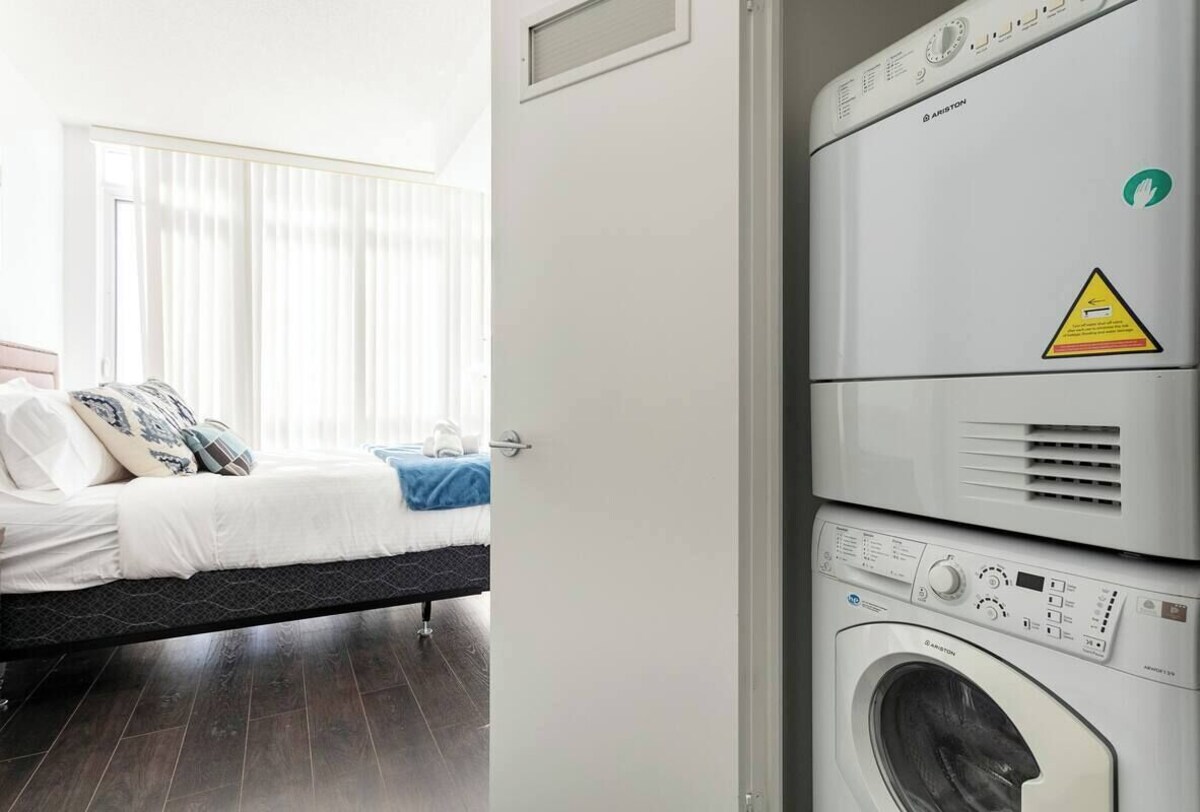 An elegantly furnished 2 Bedroom Apt. W/1 bathrooms in luxury building. Spacious & Bright Condo, suitable for families. Easy access to Lakeshore Rd, Subway and Street Car, Restaurants/Bars. High-speed wireless internet and Parking included. 2 Comfortable Beds( sleep 4) + Sofa Bed (sleep 2) Dining table and 4 chairs & TV Fridge , Stove , Built-in Dishwasher , Built-in microwave Stylish Washroom Perfect for the solo traveler, couples, families or those in town for business. → High-speed Wi-Fi. → SmartTV on which you can access your Netflix and YouTube accounts. → Both bedrooms feature queen beds to ensure an enjoyable sleep. → Full sets of hotel quality sheets and duvets for the beds and enough towels. → The kitchen is fully equipped with appliances including a large fridge and stove. → The bathroom includes a bathtub shower. → A washer and dryer are also en suite for guests to use. WORK FROM HOME OPTIONS AVAILABLE: Please send me a message if your looking for monthly rentals, I can also provide more office desks and chairs. **No parties o extra visitors allowed** No loud noise. Zero tolerance to noisy guests and will result in the removal of your booking without refund. * Guest has access to entire suite, nothing is shared. Please, make yourself at home. *All building amenities are for resident's use only, guests do not have access. *All guests are liable for any and all damages to the building's common areas, this includes legal fees as well (both host and building). *Due to COVID-19, please do not linger in the hallways or lobby. Practice social distancing as best as possible. Due to Co-vid restrictions, we limit our interactions with our guest. As such, majority of our communication will be virtual and by telephone. The property is located in one of the best neighborhoods in Downtown Toronto. The is a grocery store and a few coffee shops within a 3 mins walk from the condo. The condo is also a 5 mins walk from the lake, and thre are views of the lake from the condo balcony. In addition to the above amenities, the TTC Streetcar stops is located on the major street intersection. You can get around from the condo with multiple transportation means. The TTC has a streetcar stop by the condo, there are also bicycles for rent besides the condo. The condo is also located about 15 mins walk from union Station Unfortunately, we can’t offer a bag drop-off. For those arriving early or having a late flight, you can use bagbnb.com to find options to drop off your bag for a fee. Our prices include all fees. No hidden fees.