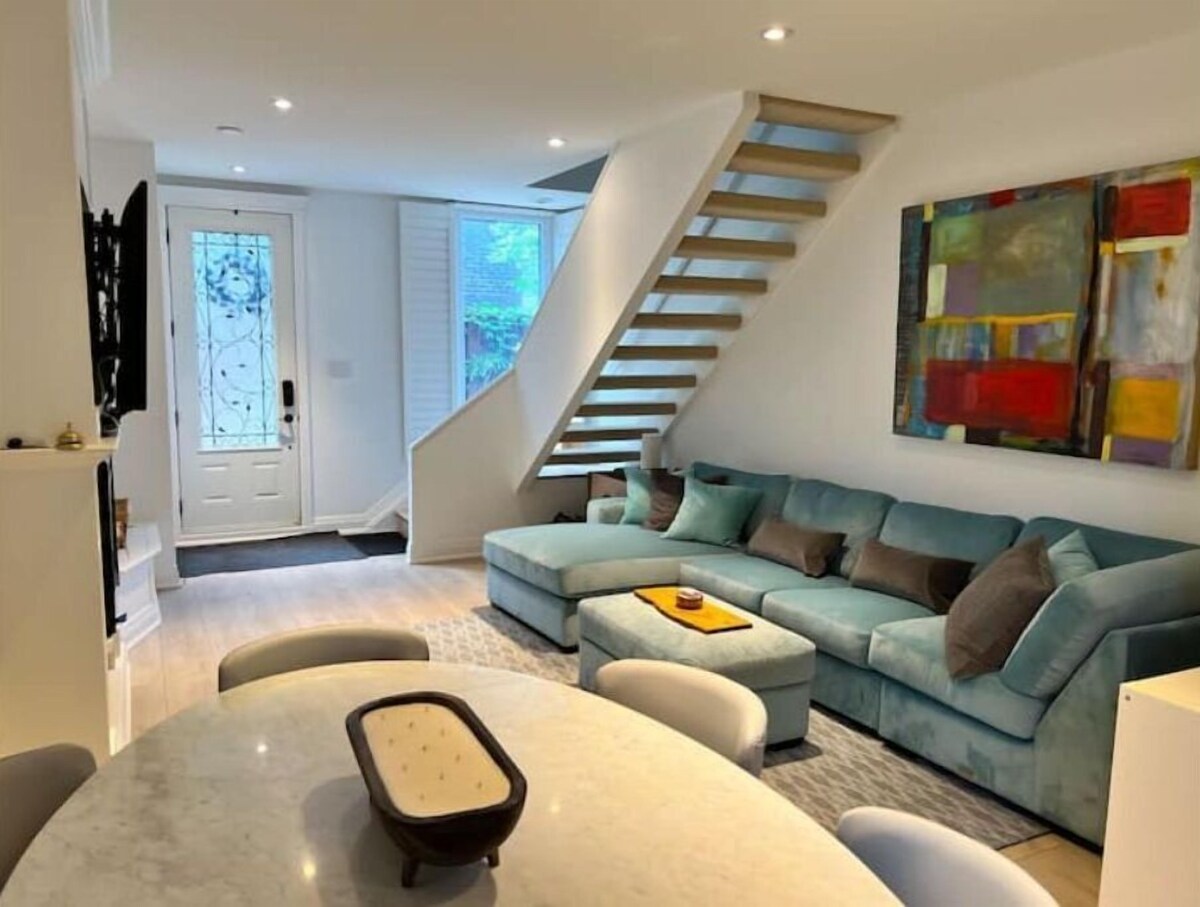 About this space Enjoy a truly Toronto experience in this gorgeous east-end home that offers full amenities with great style and convenience. Steps from entertainment, groceries, transportation, and a wide variety of restaurants and shopping. Easy place from which to access downtown or the Beach. The space This unique 3 story home is a luxurious option for a professional couple who want the flexibility of working from home, and hosting guests. It is equally perfect for a family to stay comfortably. Guest access The whole space is accessible to guests, including a lovely, private backyard with a barbecue. Other things to note Everything needed for a comfortable stay is included: linens, bedding, wifi, cable, and lots of private space. Our prices include all fees. No hidden fees.