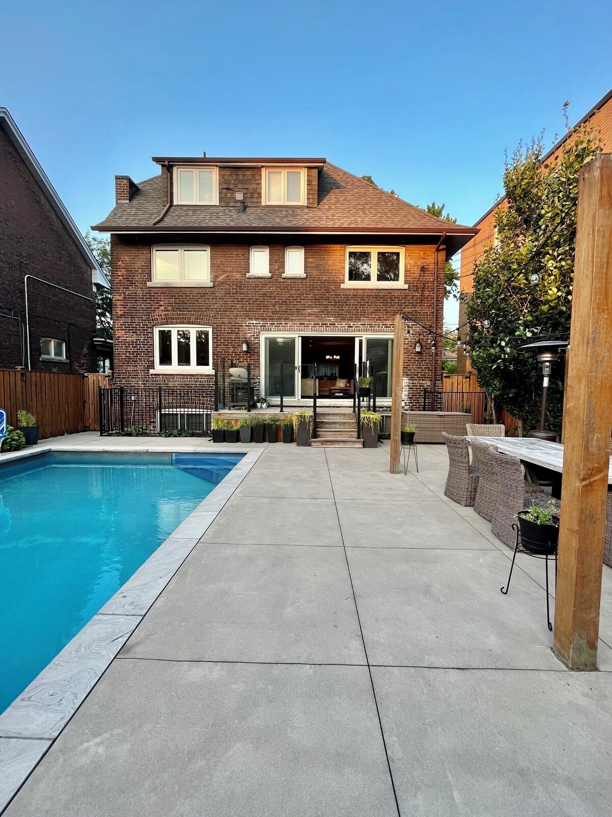 A gorgeous suburban-sized family home in urban High Park! This contemporary, fully renovated home is steps away from Keele Subway Station, offering easy access to the beautiful walking trails, tennis courts, and nature of High Park. With 3 bedrooms & 2.5 bathrooms, there's plenty of space for your family or group. Enjoy a chef's kitchen, expansive living & diningroom with fireplace, and a walk-out deck leading to a resort-like outdoor living and dining area, salt water pool, and bathroom with sauna. With a full recreation room on the second floor and large third floor master suite, both featuring private work spaces, there is room to not only enjoy each other's company, but also take private time to yourself. Family friendly ammenities like second floor laundry facilities and main floor 'mudroom' with powder room mean you can relax at home with or without 'the littles'. With an eat-in kitchen island for four, and a separate diningroom area for 8, meals seamlessly go from simple & casual to top notch. Tons of storage means there is room for everything, regardless of your length of stay. Explore amazing High Park, the shops and restaurants of Roncesvalles, the Junction, and Bloor West Village - all within walking distance. Your commute is a cinch with Keele Station steps away and the Gardiner Expressway a 5 minute drive from home. Completely redone in a contemporary open concept style, this home creates an inviting atmosphere from the moment you step inside. The tastefully designed interior features large windows and oversized sliding glass doors leading to the incredible back yard, allowing natural light to flood the space and brighten your days. Free outdoor laneway parking for 1 car is included, as are all linens, towels, and simple toiletries. The easiest move you've ever made, awaits. Our prices include all fees. No hidden fees.