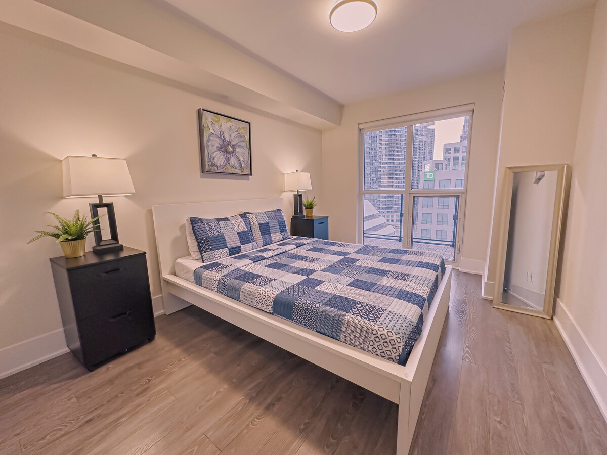 In a central area of Toronto, located within a short walking distance to Scotia Arena, CT Tower, Toronto Island, Entertainment District, Financial District and Rogers Centre, Luxury 2 bedrooms with Lakeview CN Tower Entertainment District Rogers Centre offers FREE PARKING, Wi-Fi, air conditioning and household amenities such as a dishwasher and coffee machine. There's an on-site restaurant and FREE private parking per reservation. This apartment features 2 BEDROOMS, 1 WASHROOM, bed linen, towels, a flat-screen TV with streaming services, fast internet WI-FI service and Office workshop for business travelers, a dining area, a fully equipped kitchen, and a terrace with sea views. The apartment offers 5-star accommodations with a sauna, hot tub and fitness room. A children's park is also available closely for guests at Luxury 2 bedrooms with Lakeview CN Tower Entertainment District Rogers Centre. Popular points of interest near the accommodation include CN Tower, Scotiabank Arena and Toronto Symphony Orchestra. The nearest airport is Billy Bishop Toronto City Airport, 0.6 miles from Luxury 2 bedrooms with Lakeview CN Tower Entertainment District Rogers Centre Our prices include all fees. No hidden fees.