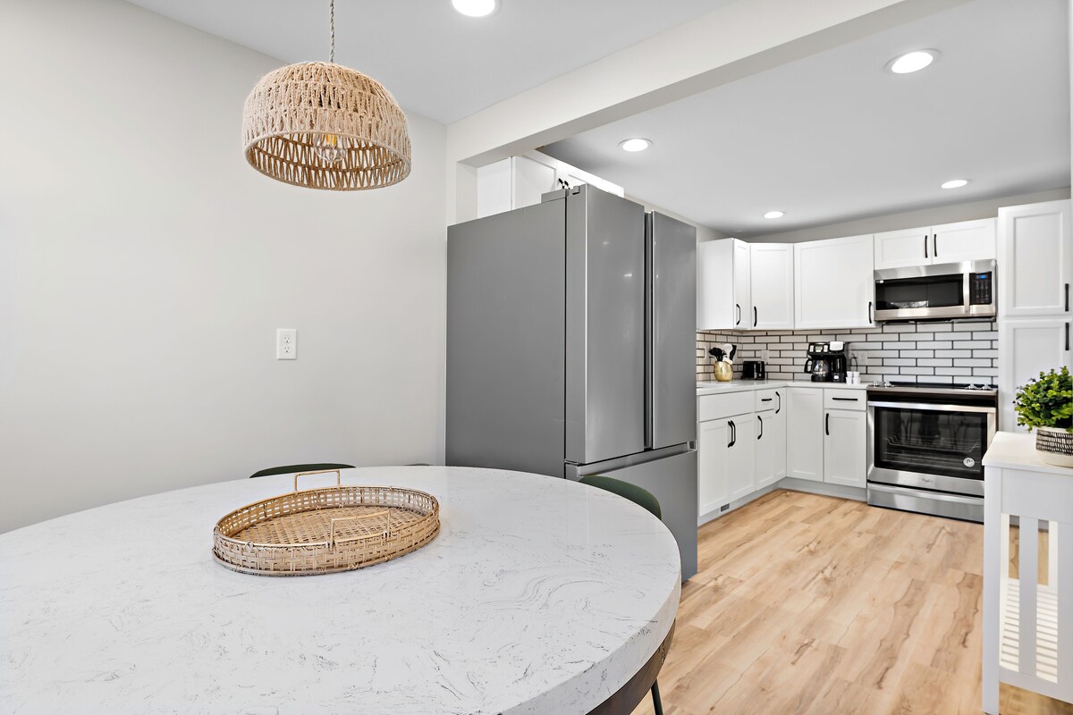 Discover this newly renovated home in the heart of Northeast Minneapolis. With ample space for all groups, you will be able to comfortably sleeps ten guests. Located near local breweries and restaurants, you'll have a great time exploring the vibrant neighborhood. 2 car garage parking is included! A fully stocked kitchen is available when you feel like staying in. Book now for an unforgettable Minneapolis adventure! The space: The lower level of a duplex, this unit has 3 bedrooms and 2 bathrooms. On the main floor you have two bedrooms, one with a queen bed in it and the other has two twins as well as a full bath. A large living room lends itself for hanging out or additional sleeping space. The fully stocked kitchen has an eat in dining table and great counter space for cooking. In the basement, there is another bedroom with a full bed and a large living space with pull out couch, board games, and a desk for your WFH needs! The neighborhood: You'll enjoy this quaint neighborhood with quick access to all that Northeast Minneapolis has to offer. With various restaurants and parks within walking distance, you are never far from your next stop. Our prices include all fees. No hidden fees.