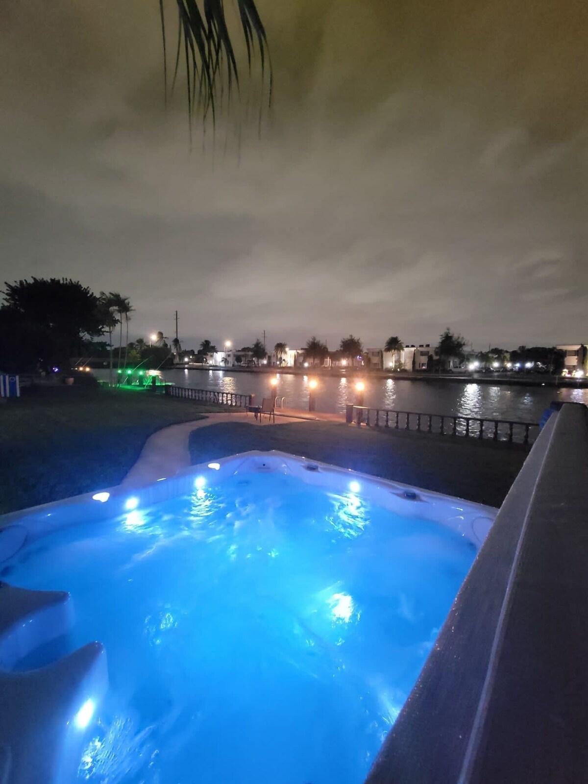 Enjoy a relaxing stay at this waterfront paradise with a warm pool, spacious Jacuzzi, outdoor seating, and dining with a spectacular serene water view.